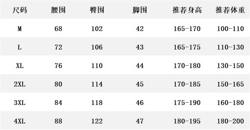 - Tailles: M à 4XL (veuillez indiquer votre taille et votre poids lors de la commande).