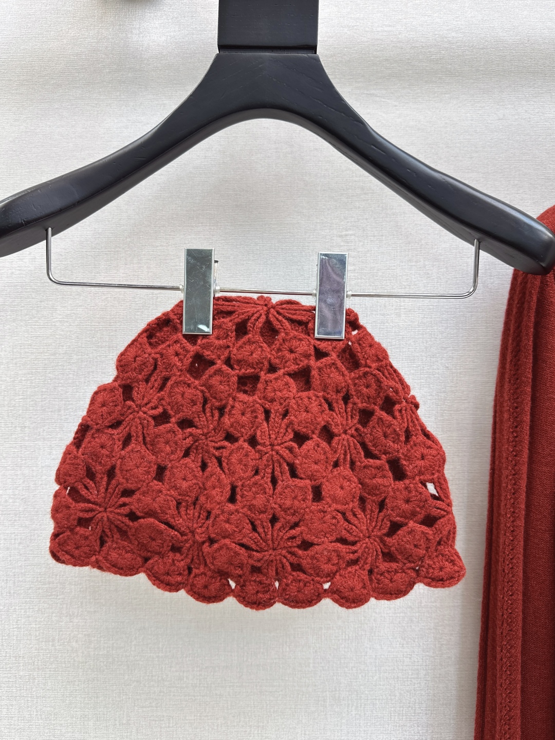 Cardigan Élégant à Col en V et Bonnet Fleur en Crochet - Collection Automne/Hiver