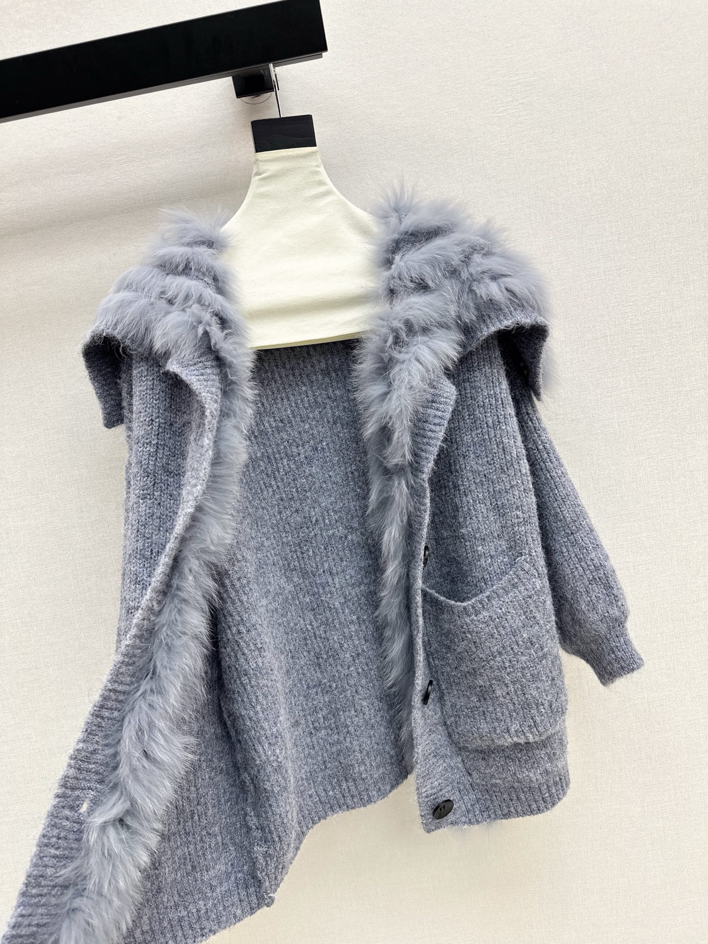 Tags: Cardigan En Maille, Cardigan Mi Long, Col En Fourrure De Renard, Ouvert Sur Le Devant, Vêtement D'extérieur Femme