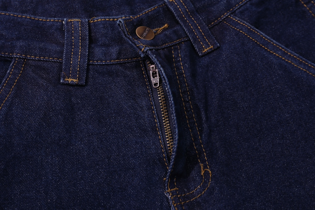 Adoptez un style décontracté avec ce jean Carhartt WIP, coupe droite, taille moyenne, en coton confortable. Idéal pour un look quotidien polyvalent.