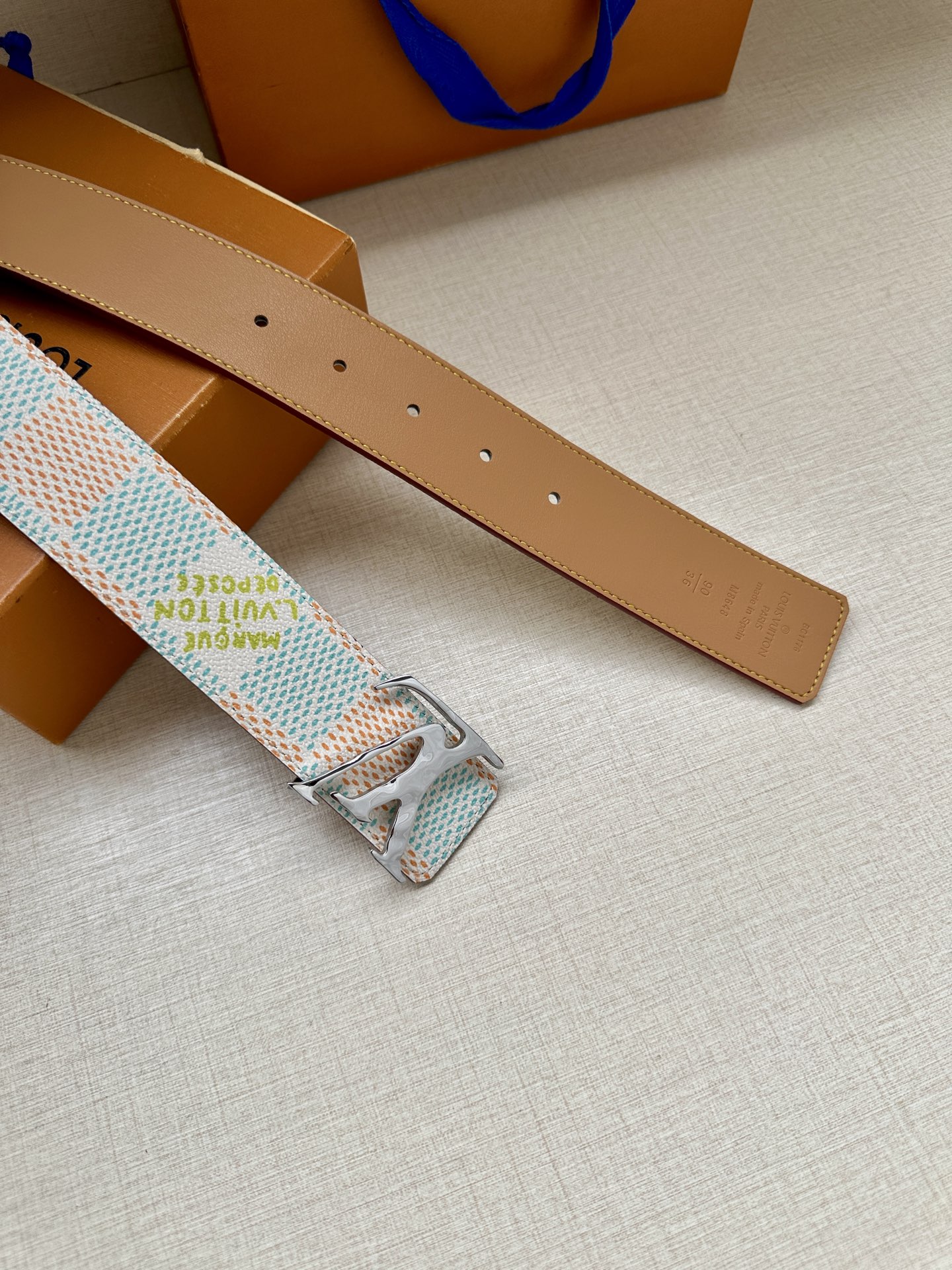 - Boucle LV emblématique en métal avec finition élégante.