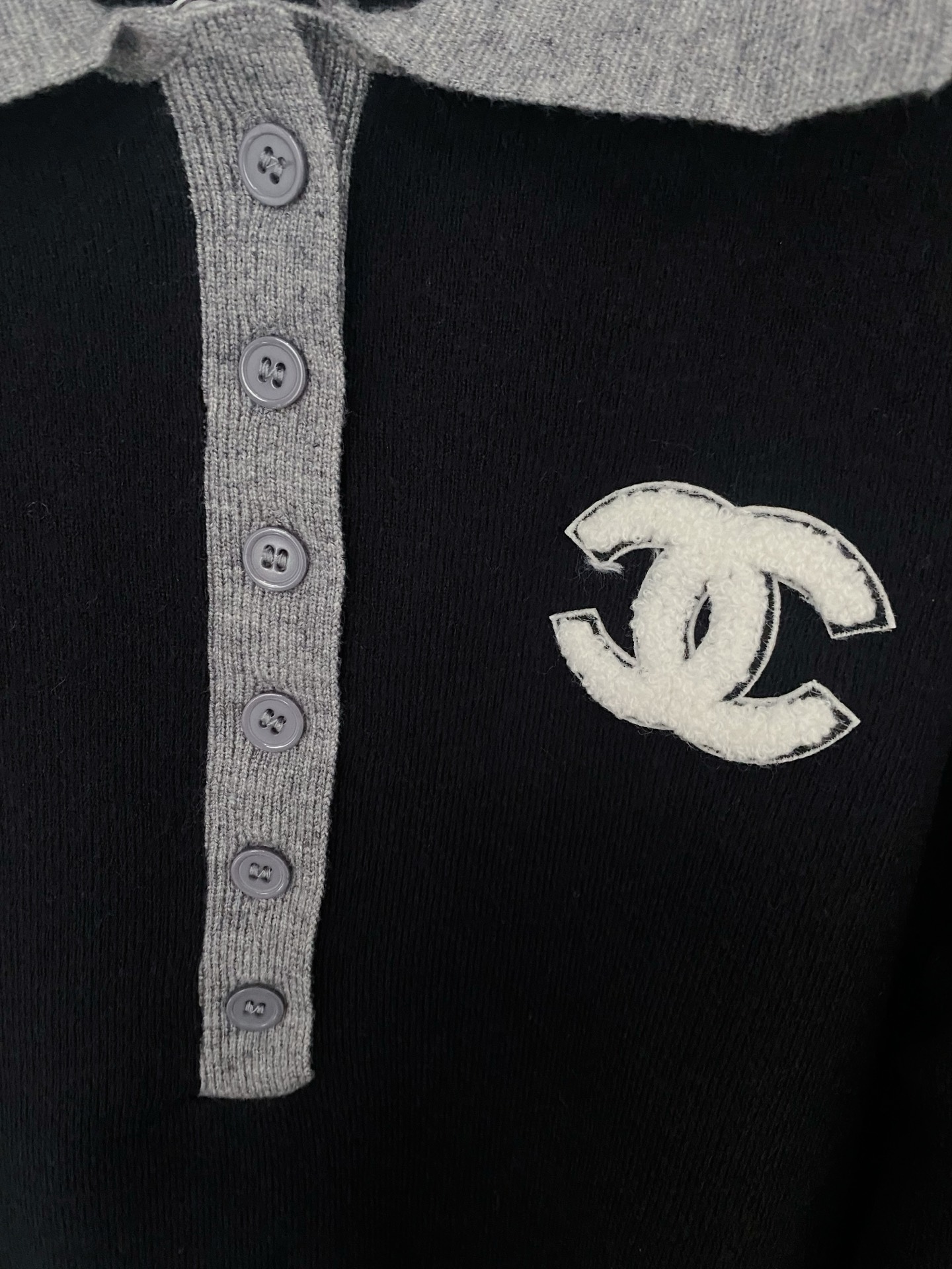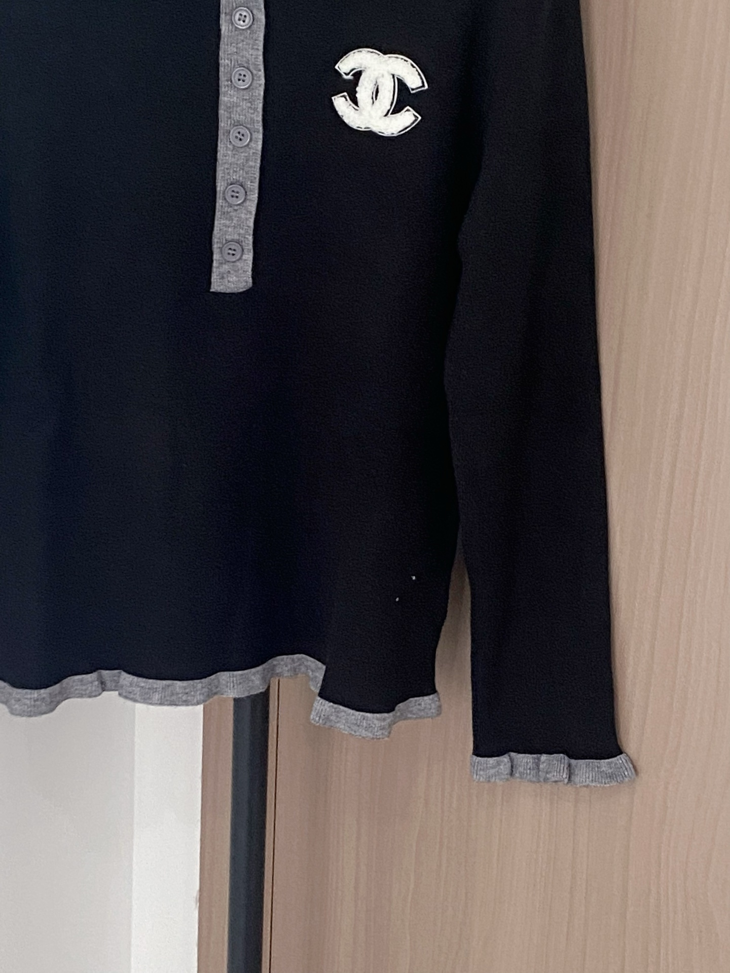 Chanel Polo à Manches Longues Bicolore avec Logo