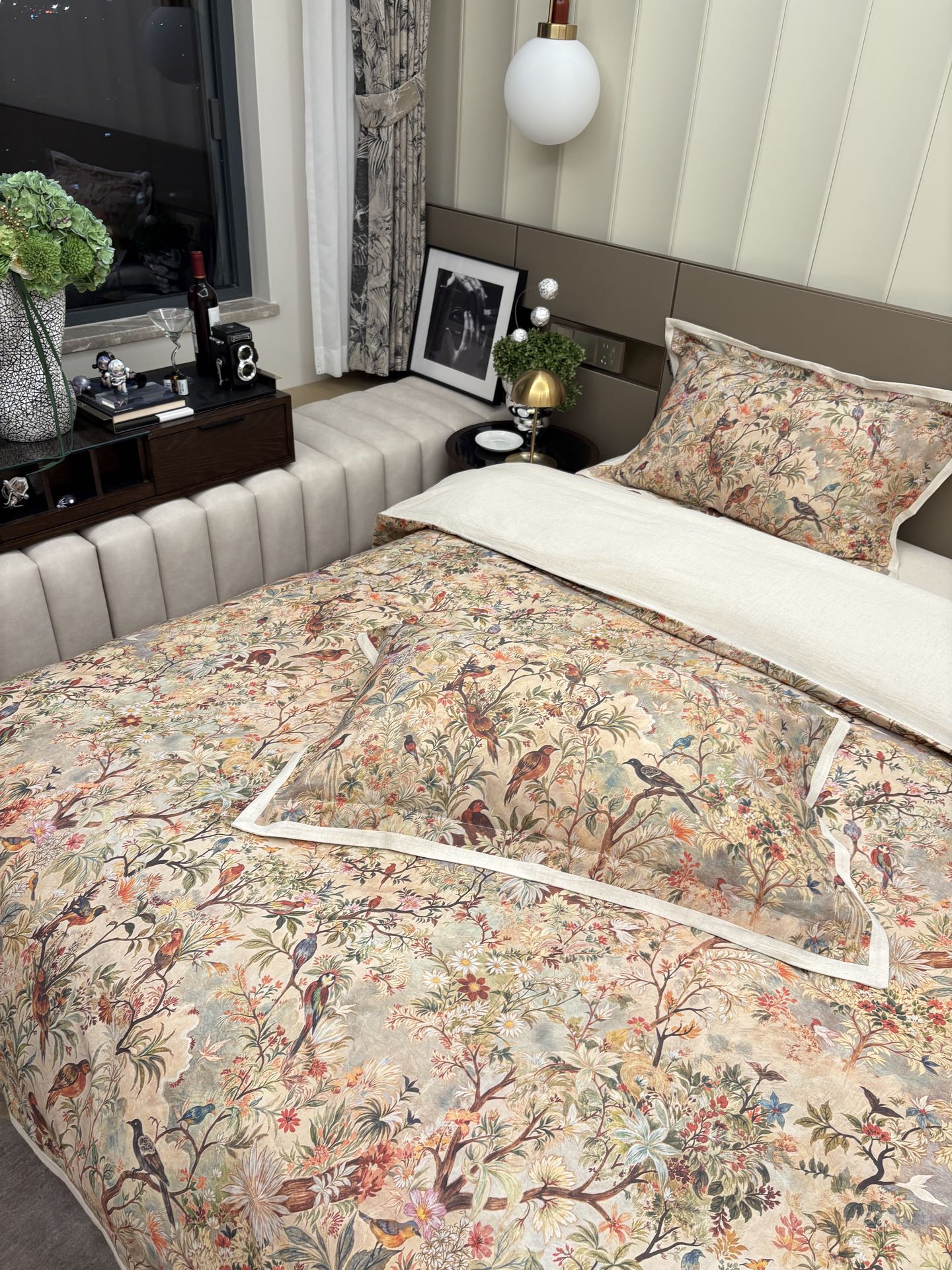 Ensemble de literie 4 pièces en coton et lin à imprimé numérique, grand format