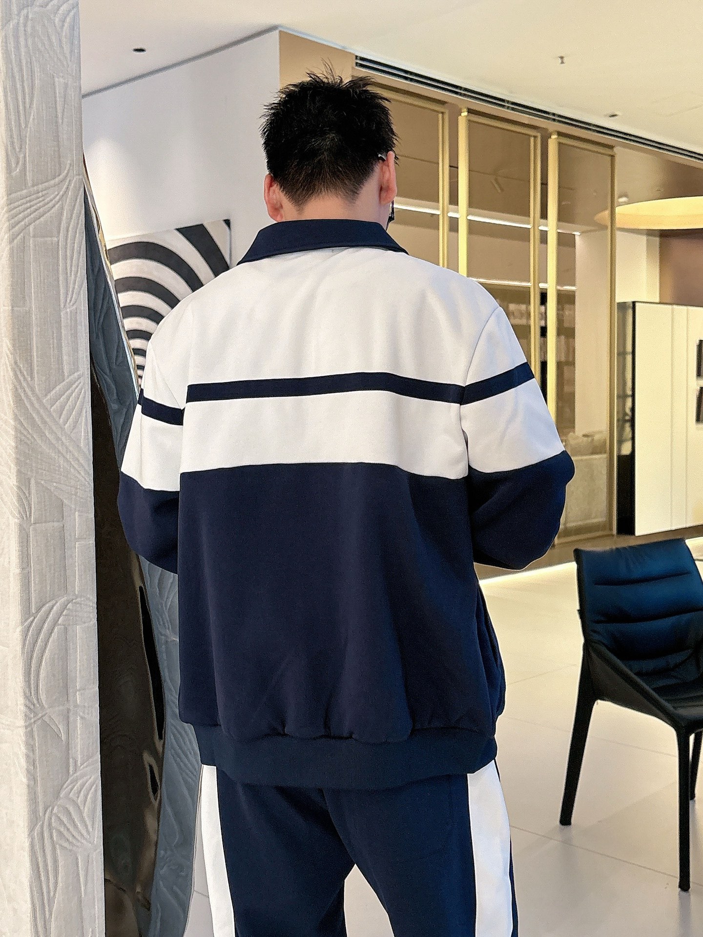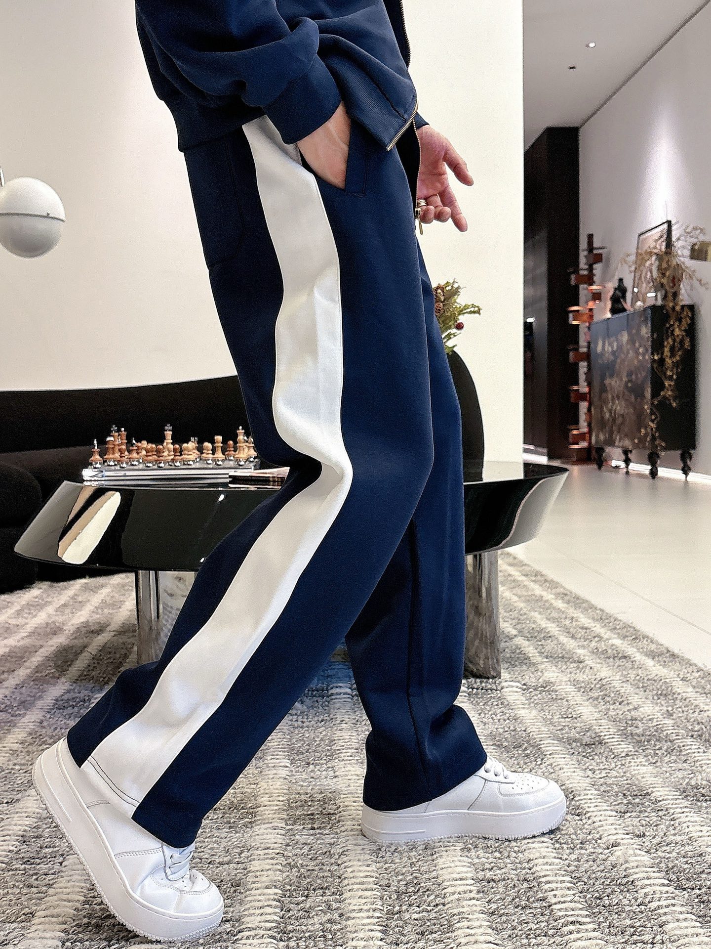 Ensemble de survêtement zippé à rayures bicolores pour homme