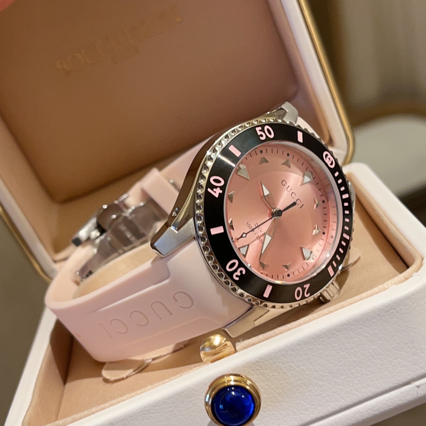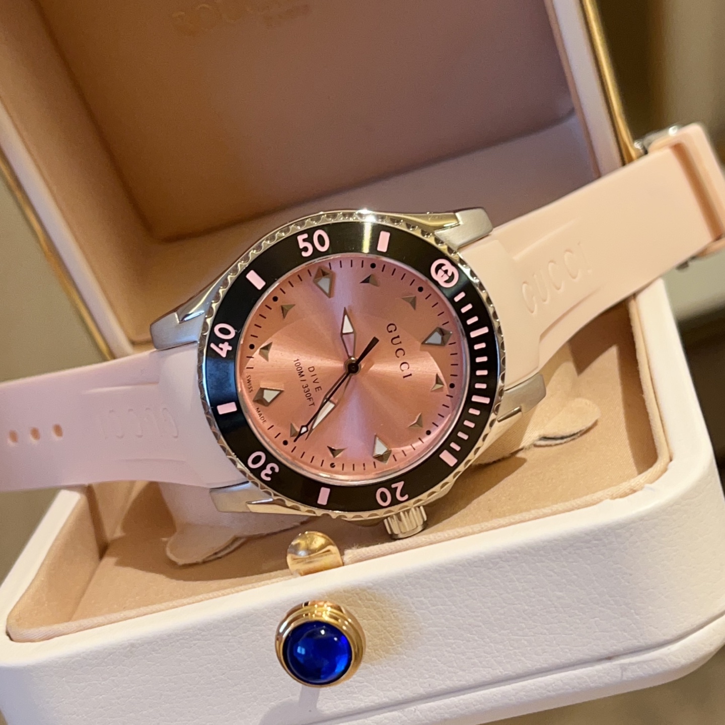 Tags: Montre Bracelet Caoutchouc, Montre de Luxe 40mm, Montre Femme Cadran Rose, Montre Gucci Femme, Montre Gucci Rose, Montre Quartz Gucci Dive