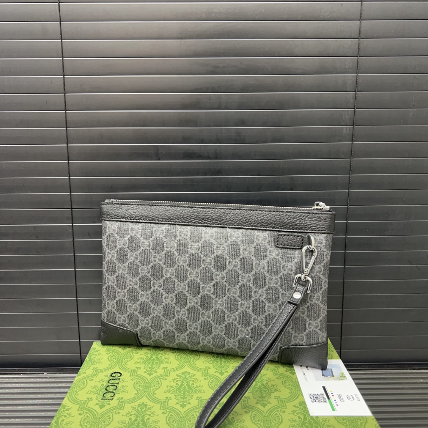 Gucci Pochette Homme GG Supreme Noir/Gris, Fabrication Italienne de Luxe