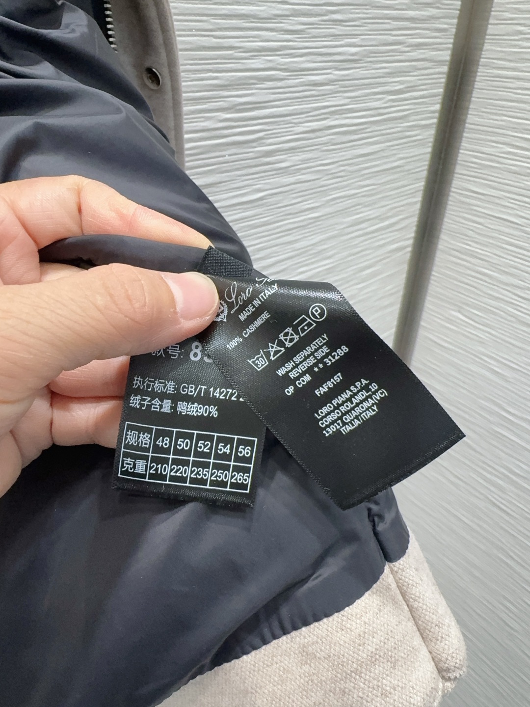 Restez au chaud avec ce manteau en duvet LORO PIANA 2025FW. Design unique, rembourrage en duvet d'oie, parfait pour un usage décontracté et élégant.