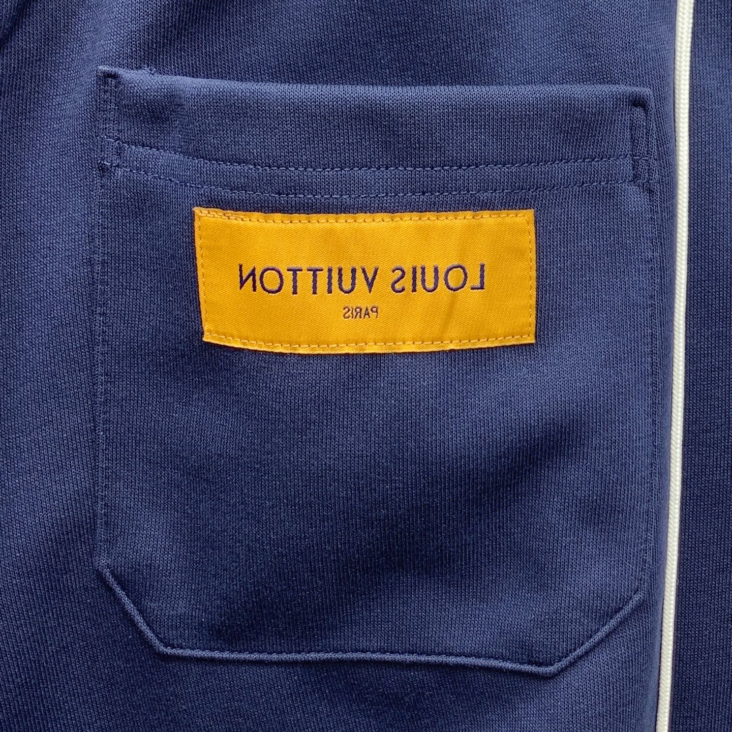 Pantalon de survêtement Louis Vuitton Automne/Hiver 2025, broderie logo, coupe décontractée, confort et qualité supérieurs. Disponible en noir et bleu royal.