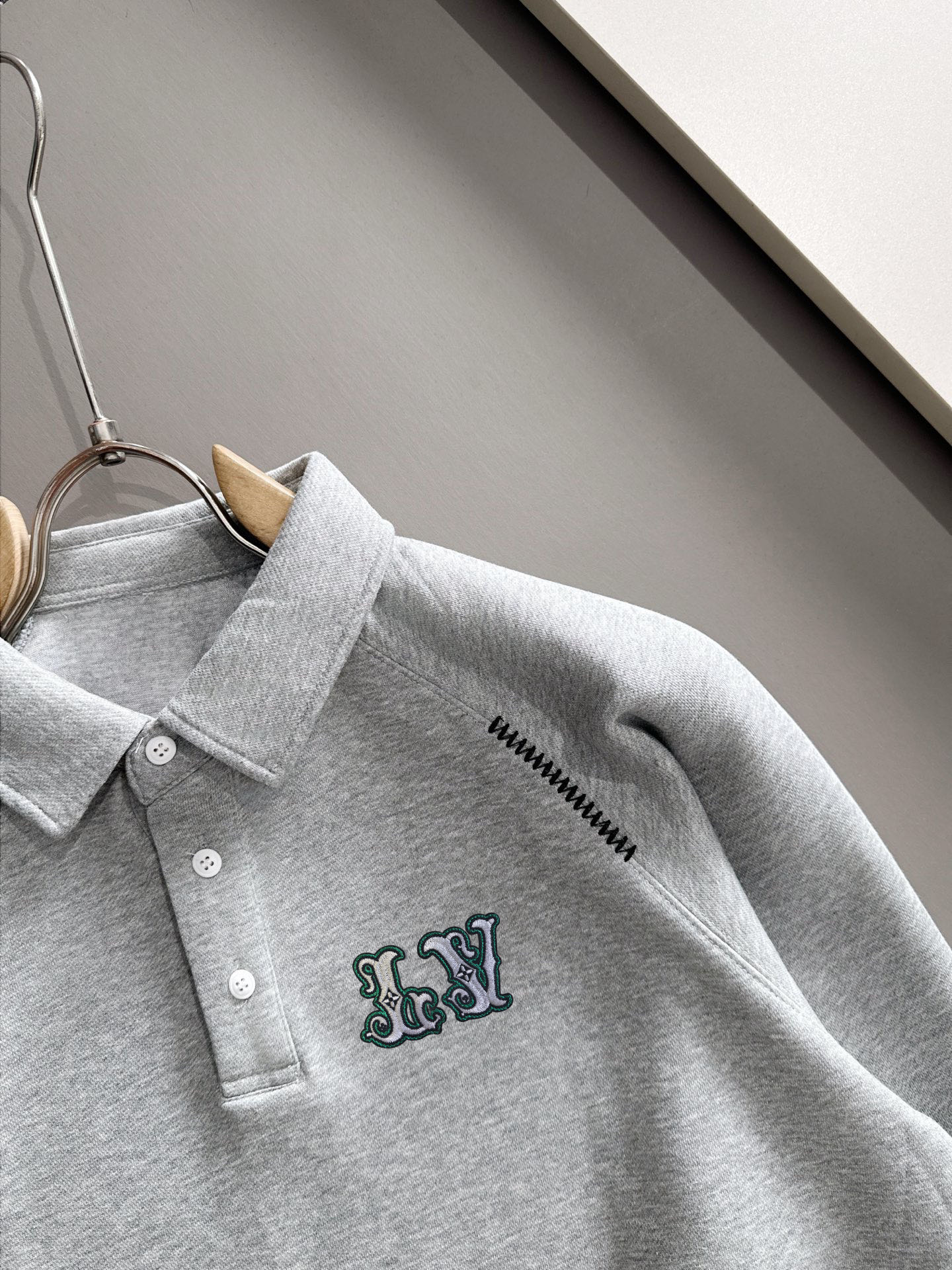 Tags: Mode Automne Hiver 2024, Pull À Col Rabattu Brodé, Pull En Molleton Louis Vuitton, Pull Gris Homme, Vêtement De Marque De Luxe