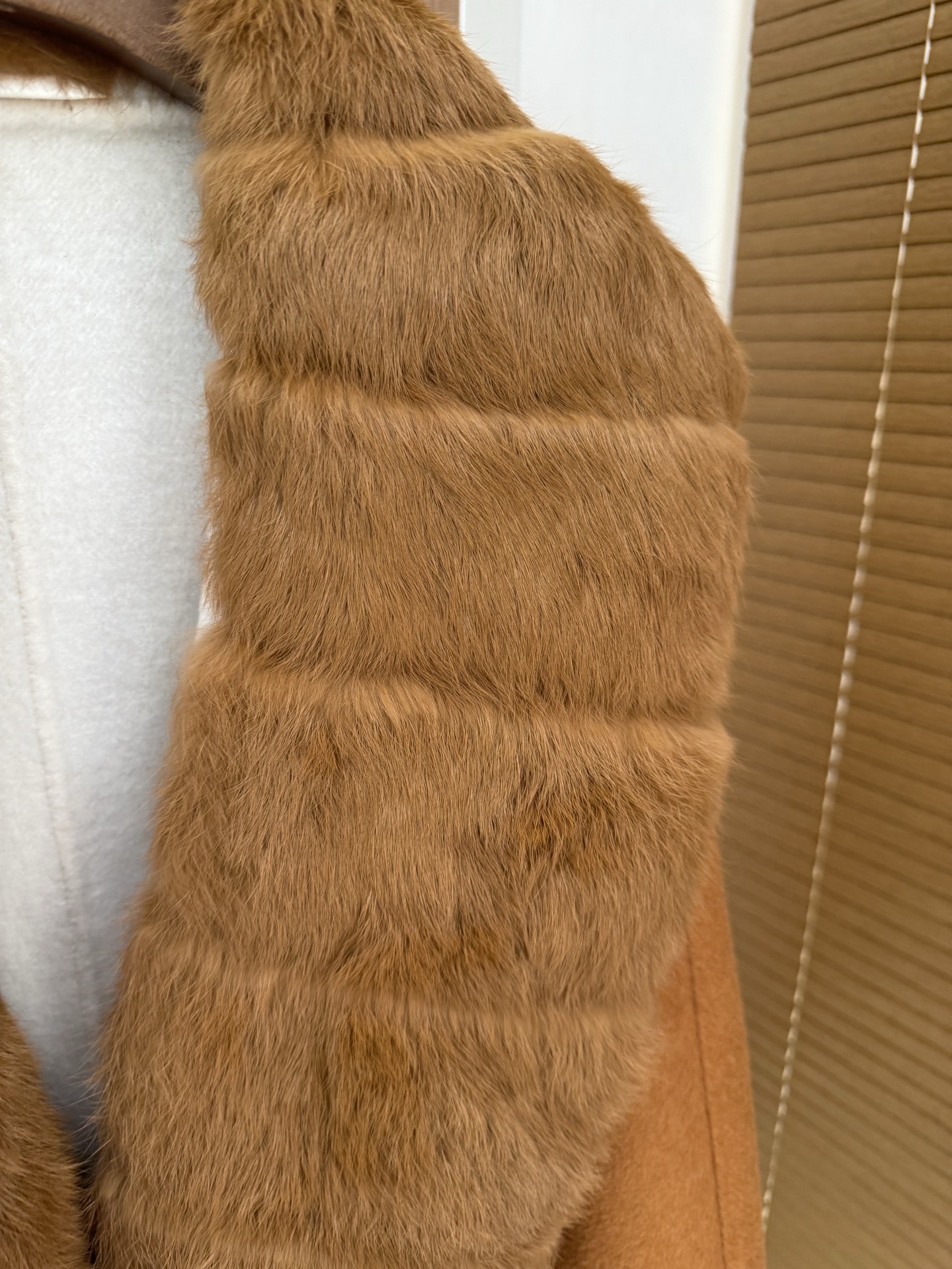Manteau en cachemire Loro Piana avec bordure en fourrure, couleur caramel