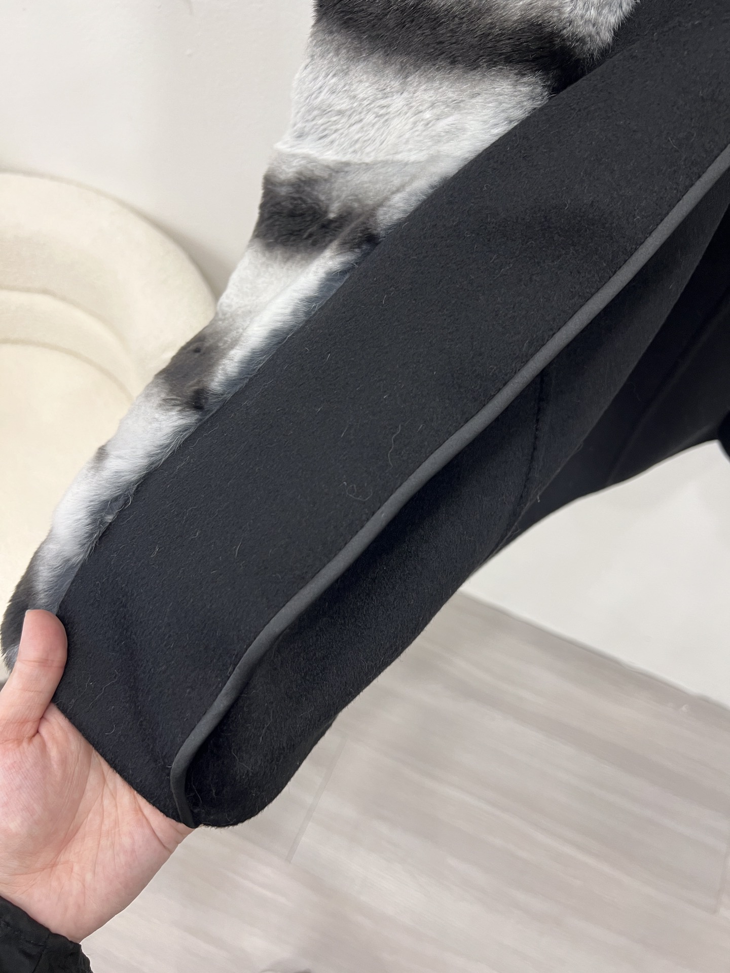 Manteau Loro Piana en Laine et Fourrure de Lapin Rex avec Capuche, Collection Automne/Hiver 2025