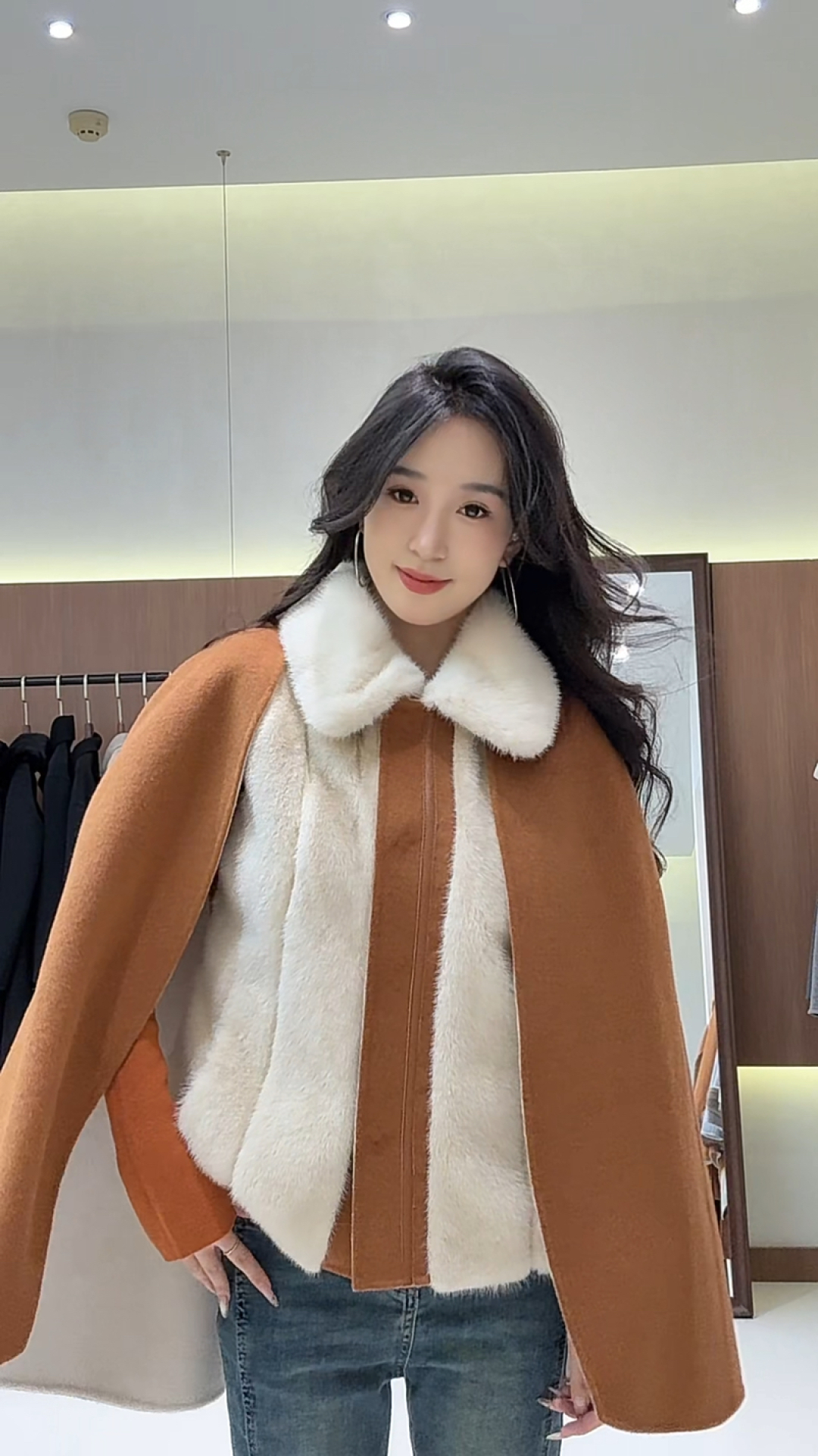Tags: Cape En Fourrure Max Mara, Cape Hiver Élégante, Cape Laine et Fourrure, Mode Hiver Luxe, Vêtement Extérieur Fourrure