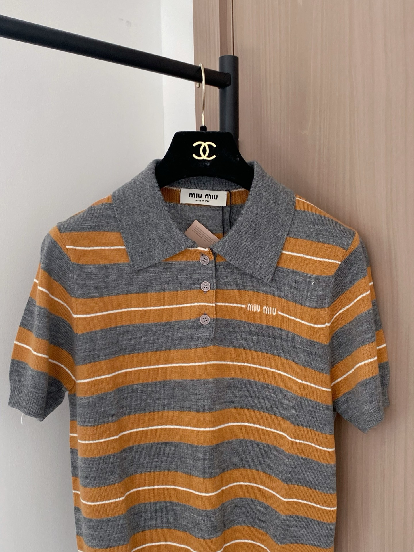 Miu Miu Polo Rayé en Maille avec Logo Brodé - Collection 2025
