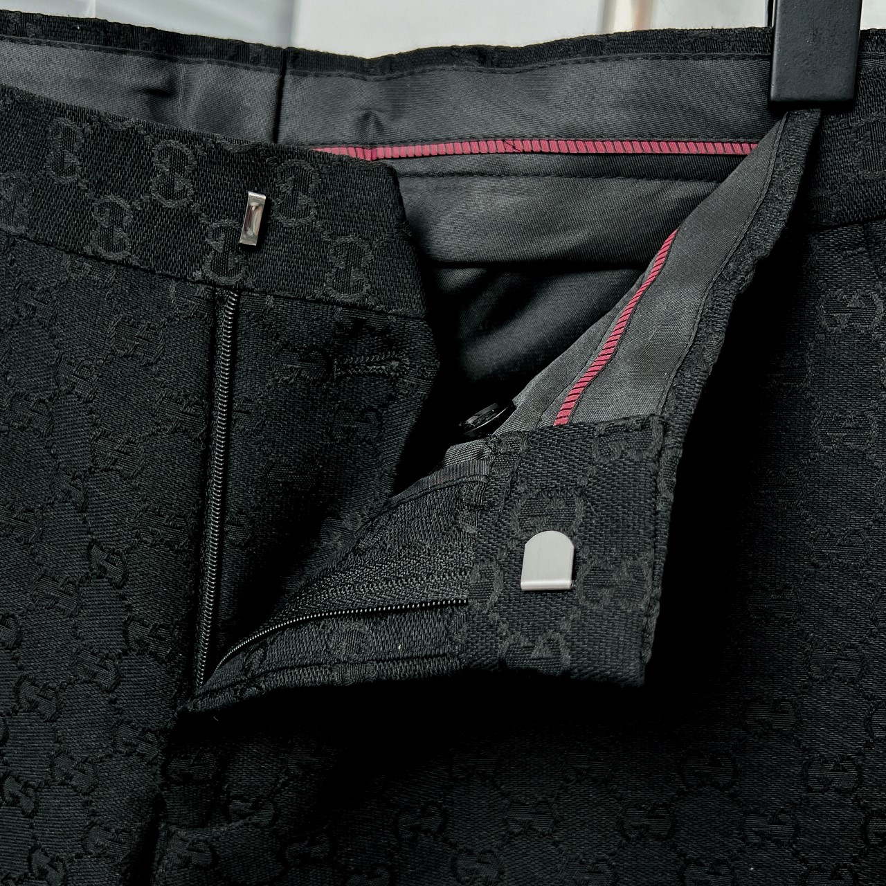 Tags: Gucci Homme Élégant, Jacquard Gg Noir, Pantalon Coupe Slim, Pantalon De Costume Gucci, Pantalon Habillé Luxe