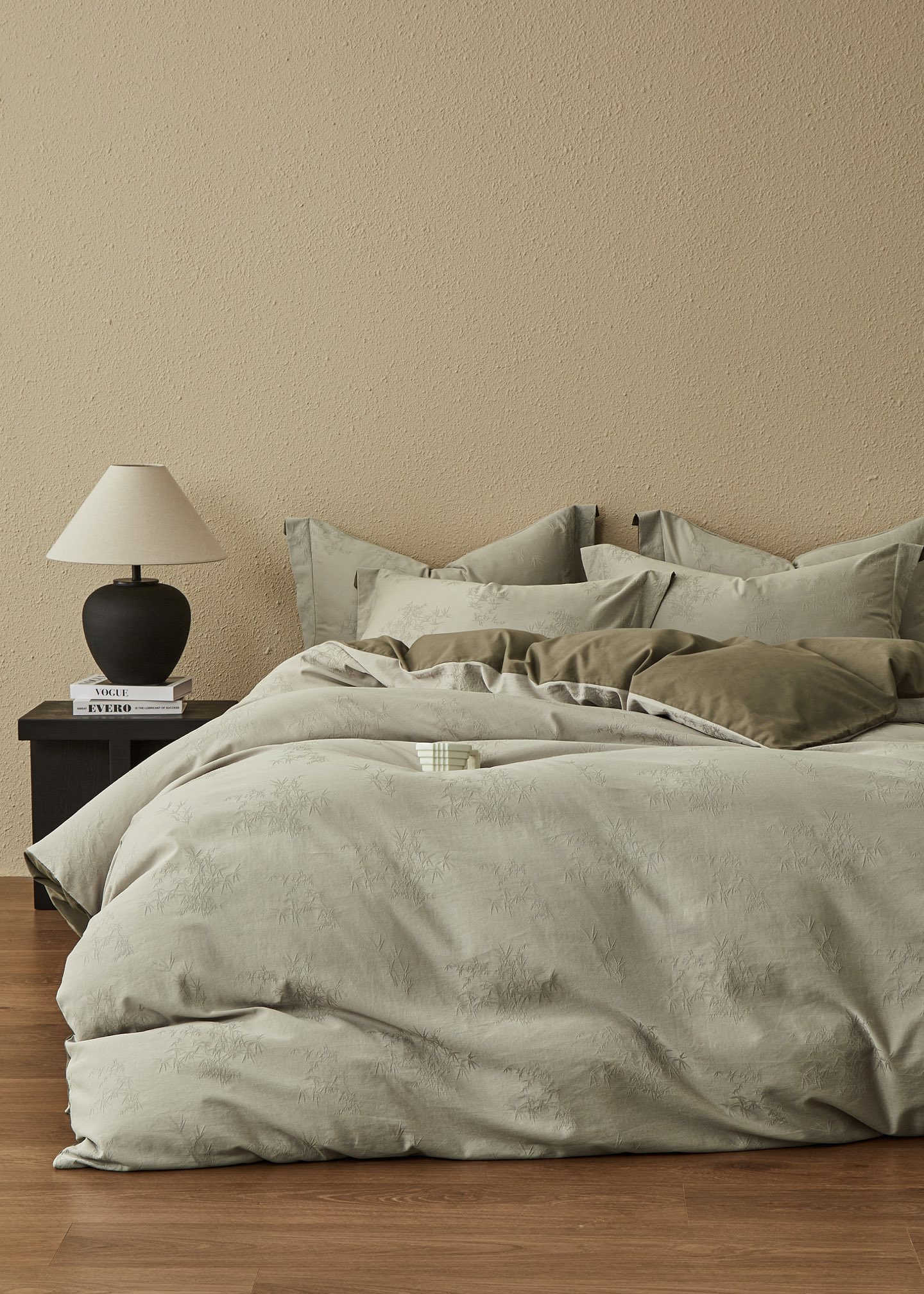 Cette somptueuse parure de lit transformera votre chambre en un havre de paix et de luxe. Confectionnée avec un coton épais de haute qualité et ornée de motifs jacquard en relief, elle est conçue pour vous offrir une expérience de sommeil incomparable.
