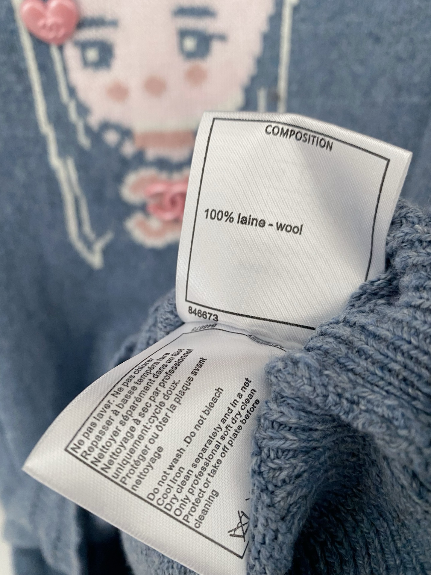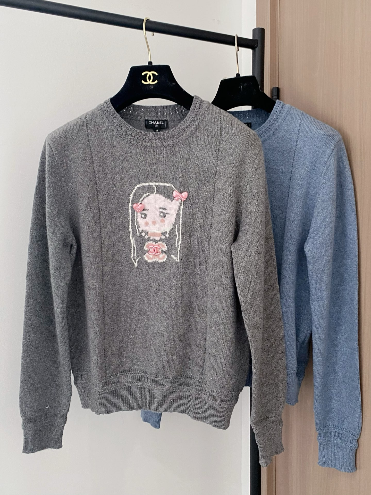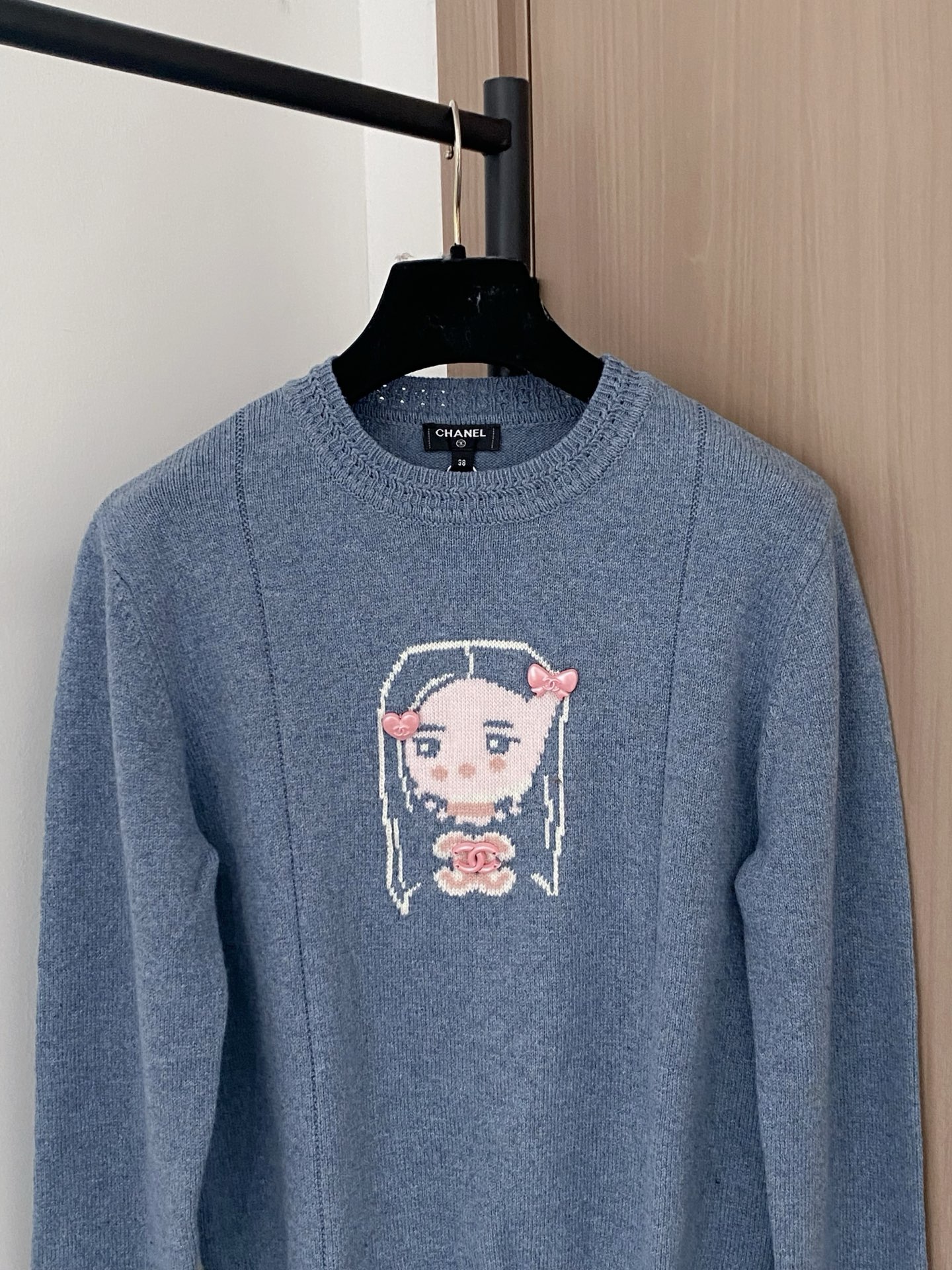 Tags: Pull Bleu Clair Femme, Pull Chanel Manches Longues, Pull Femme Motif Dessin Animé, Pull Tendance Chanel, Vêtement de Luxe Femme