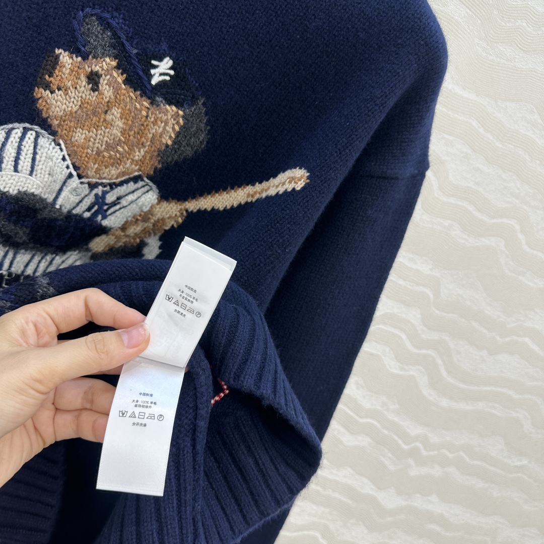 Ce pull Ralph Lauren incarne le style américain classique avec une touche ludique. Confectionné en laine douce et chaude, il arbore un motif d'ours joueur de baseball des New York Yankees, ajoutant une note de nostalgie et de fun à votre garde-robe.