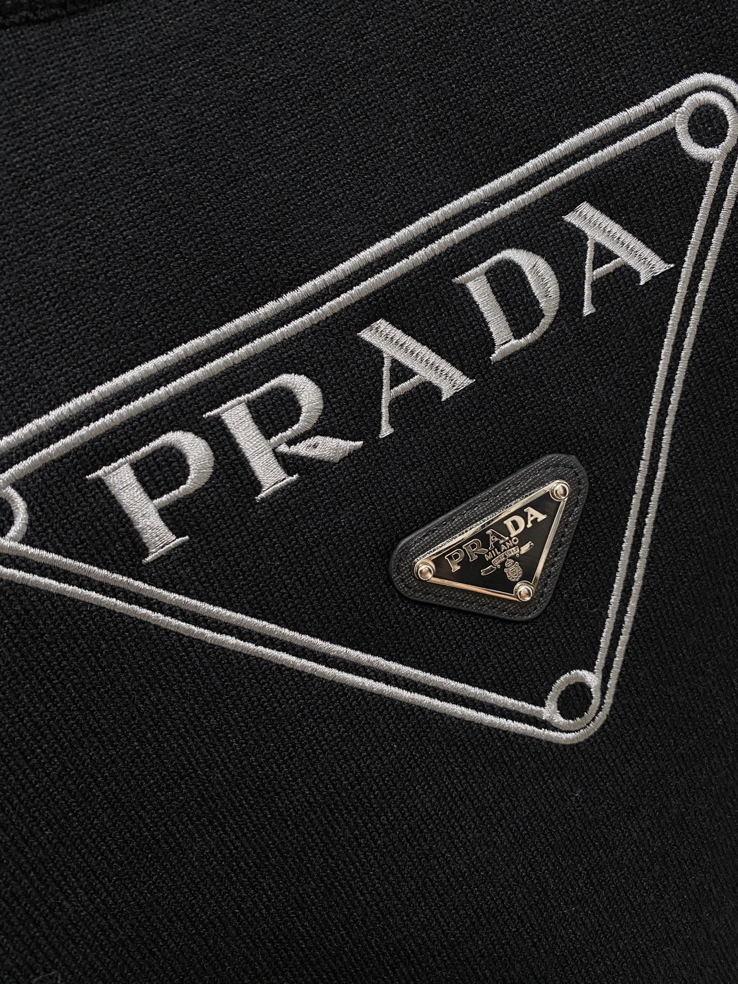 - Design classique à col rond, rehaussé par le logo triangle emblématique de Prada.
