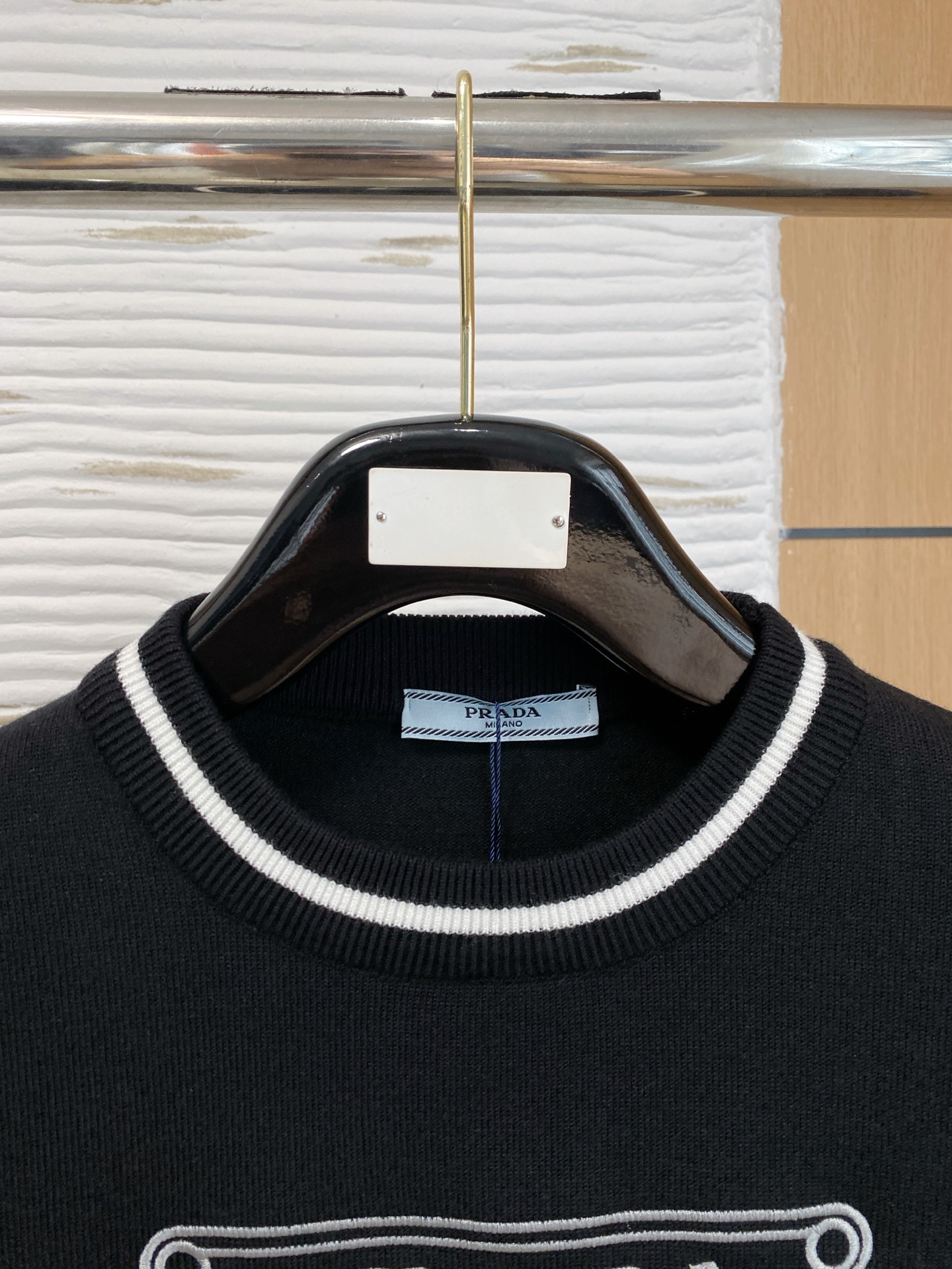J'adore ce pull! La laine est douce et chaude, et le logo Prada ajoute une touche de luxe. Il est parfait pour les soirées fraìhes.