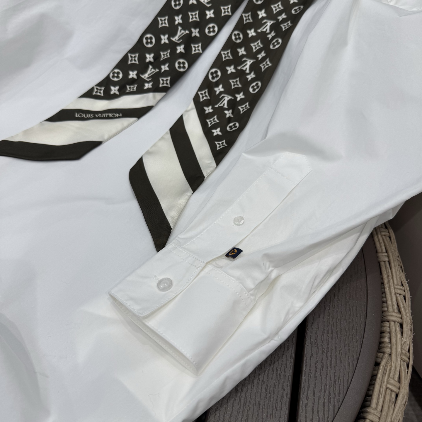 Robe Chemise en Popeline de Coton avec Foulard Monogram Louis Vuitton Automne-Hiver