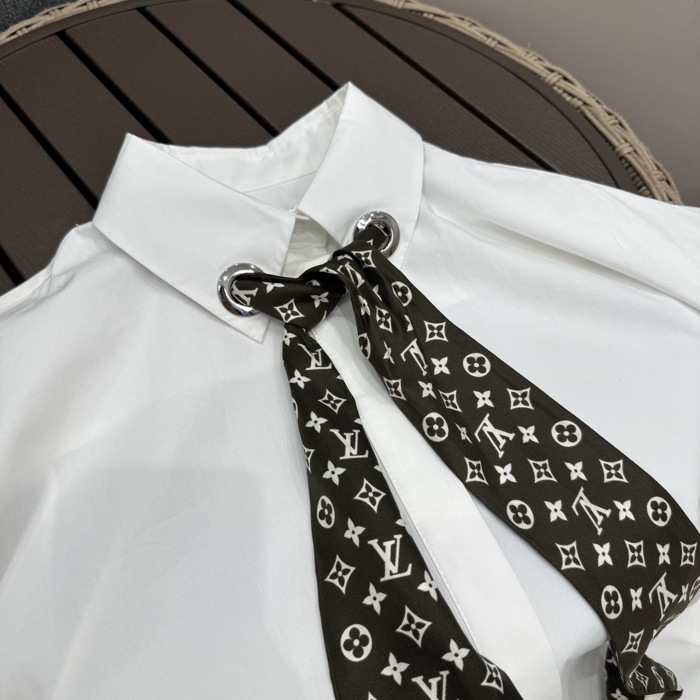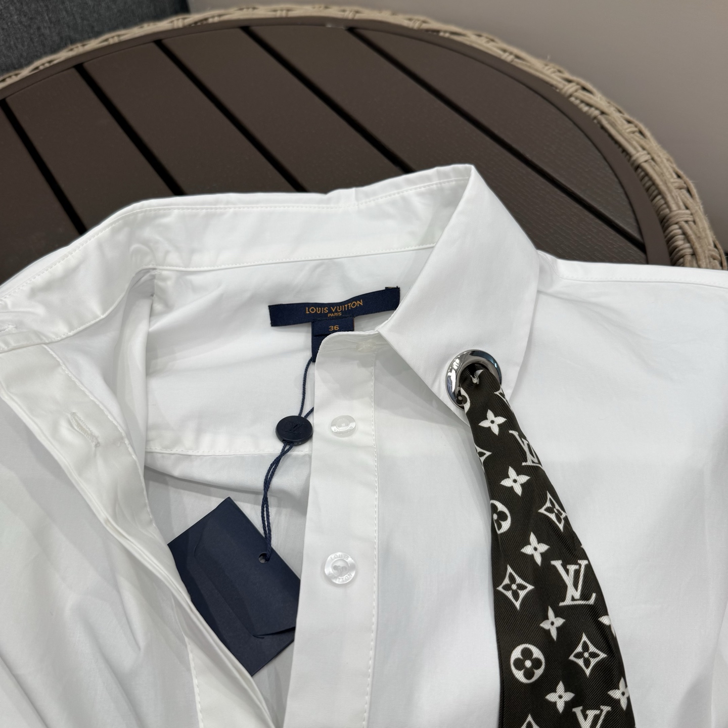 Élégante robe chemise avec foulard Monogram LV, parfaite pour un look tendance et confortable. Coupe ample, tissu de qualité supérieure.