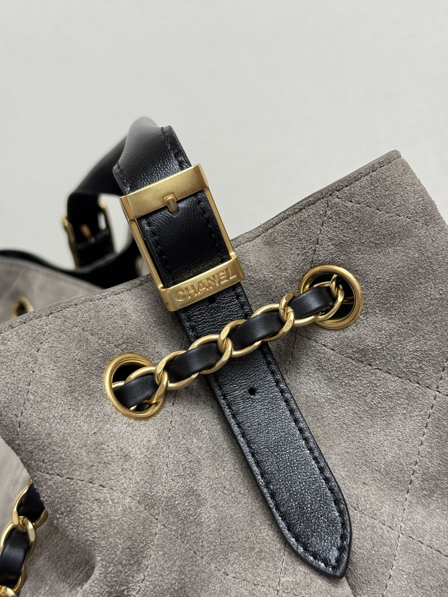 Sac à main Chanel 25A en daim et cuir, bandoulière chaîne ajustable