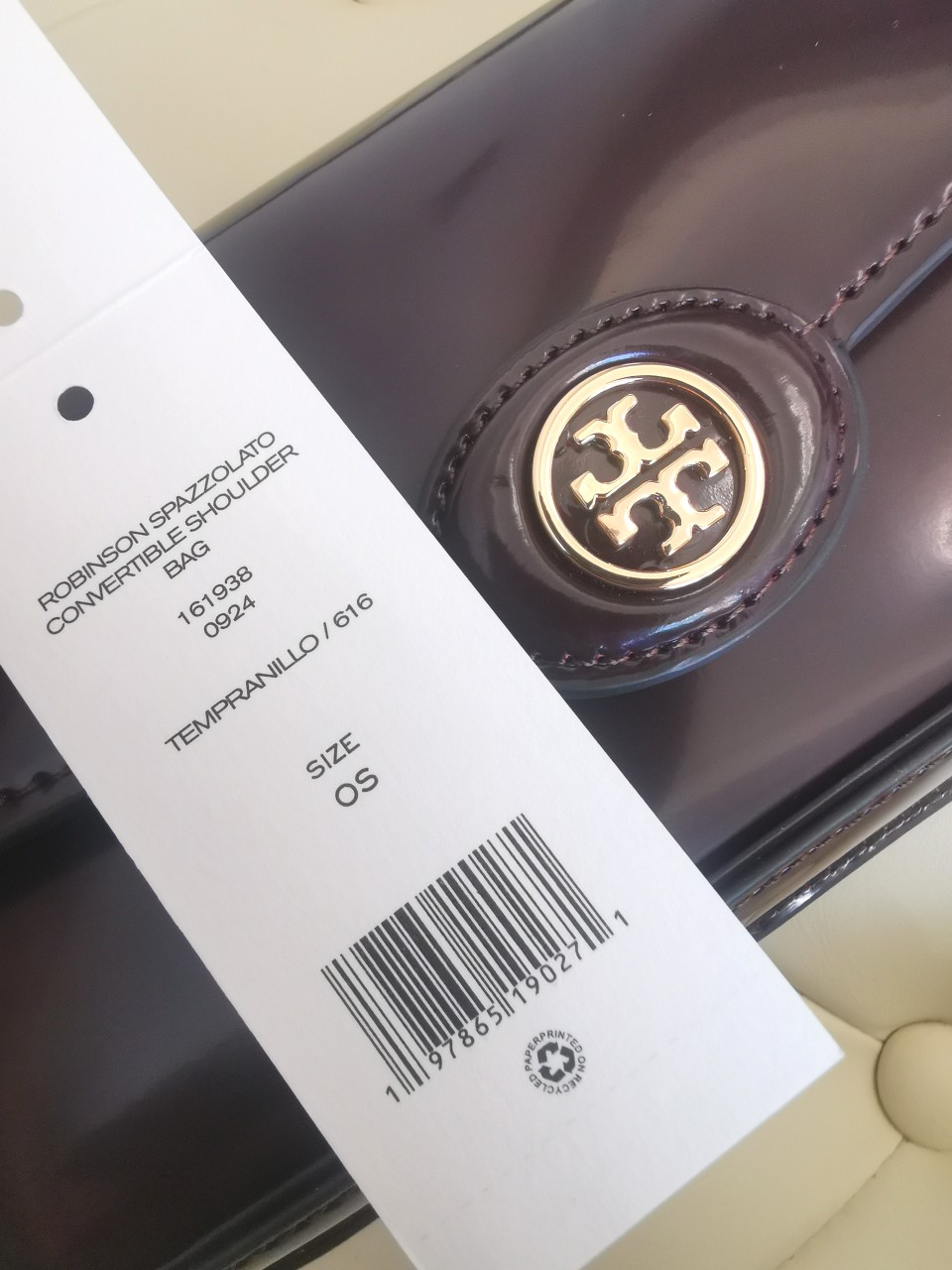 Élégant sac bandoulière Tory Burch Robinson en cuir verni couleur chocolat. Design classique et bandoulière réglable pour un style personnalisé.