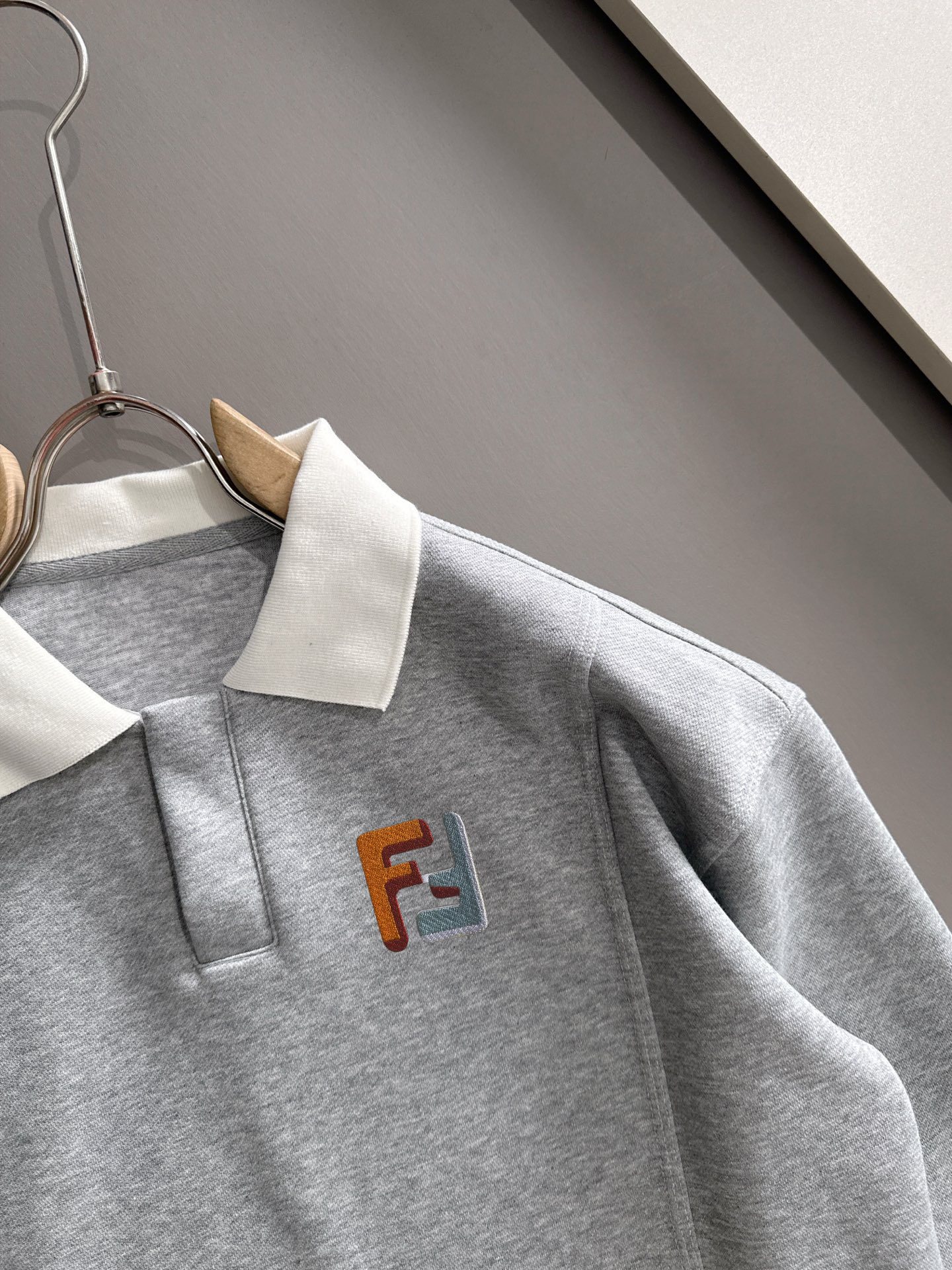 Découvrez le sweat-shirt Fendi à col revers, un modèle unisexe tendance pour l'automne-hiver 25SS. Confort, style et qualité supérieure garantis.