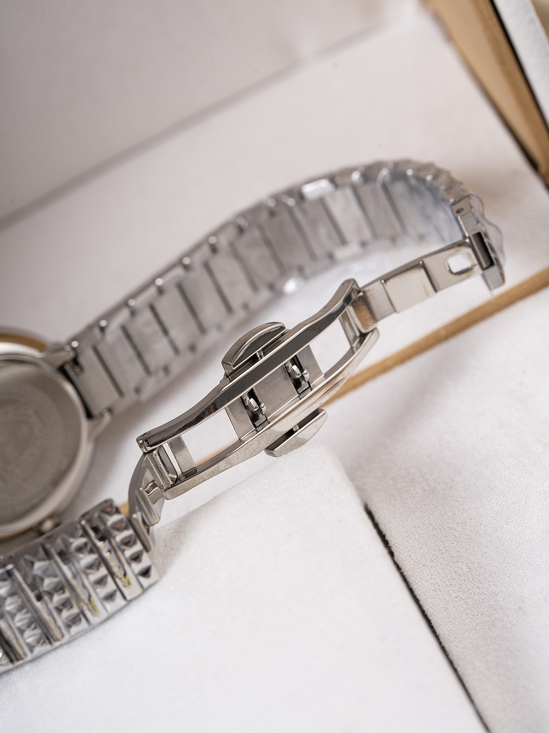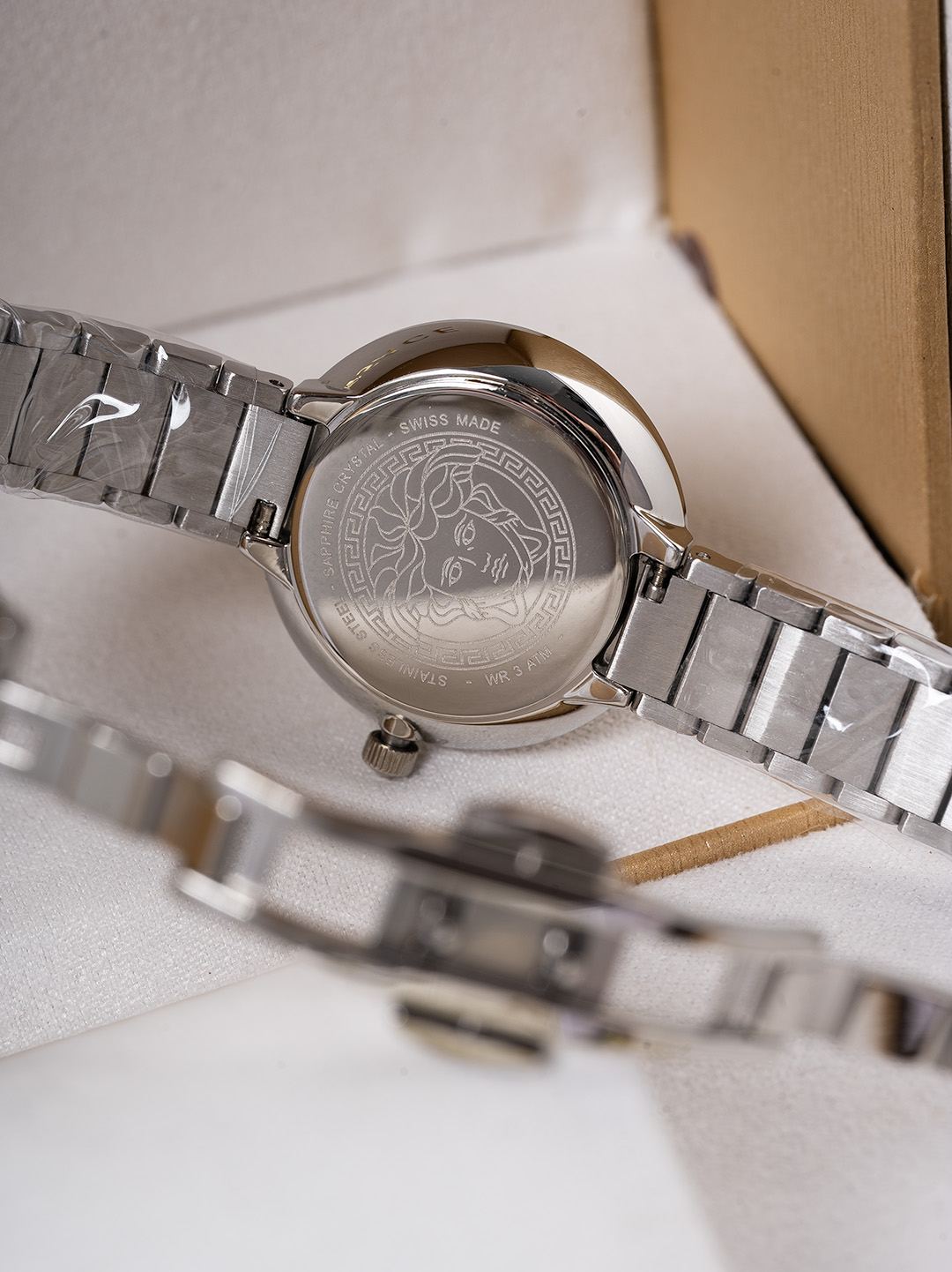 Tags: Montre Argentée Femme, Montre Bracelet Acier, Montre Cadran Turquoise, Montre de Luxe Femme, Montre Femme Versace, Montre Suisse Turquoise