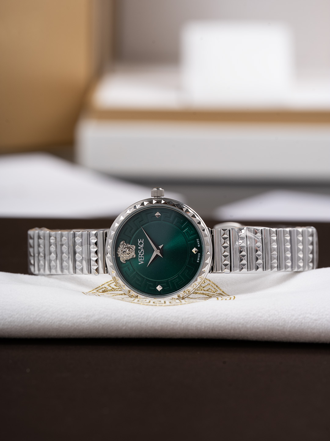 Versace Montre Femme Turquoise Cadran Argent Bracelet Acier Inoxydable Suisse