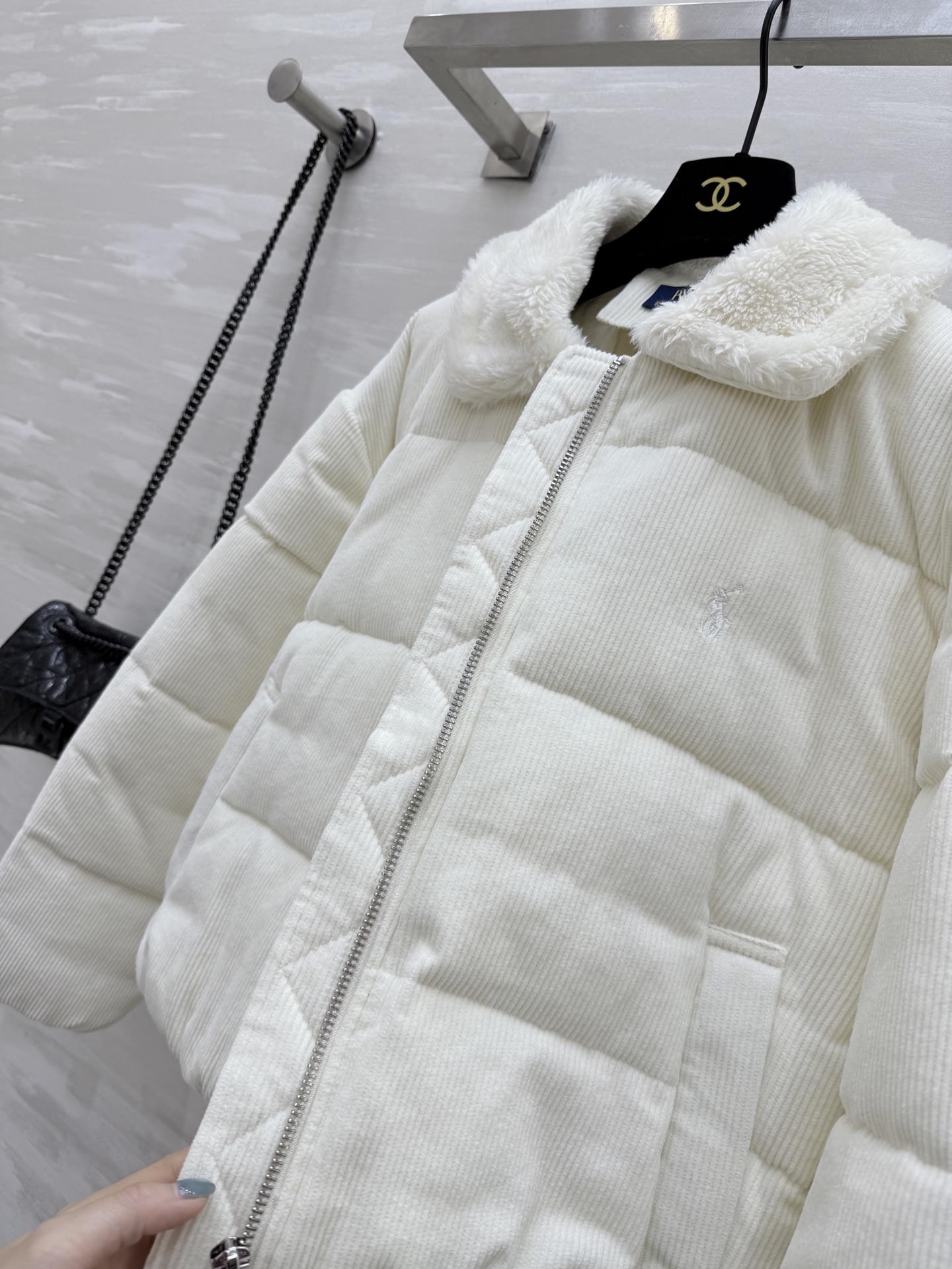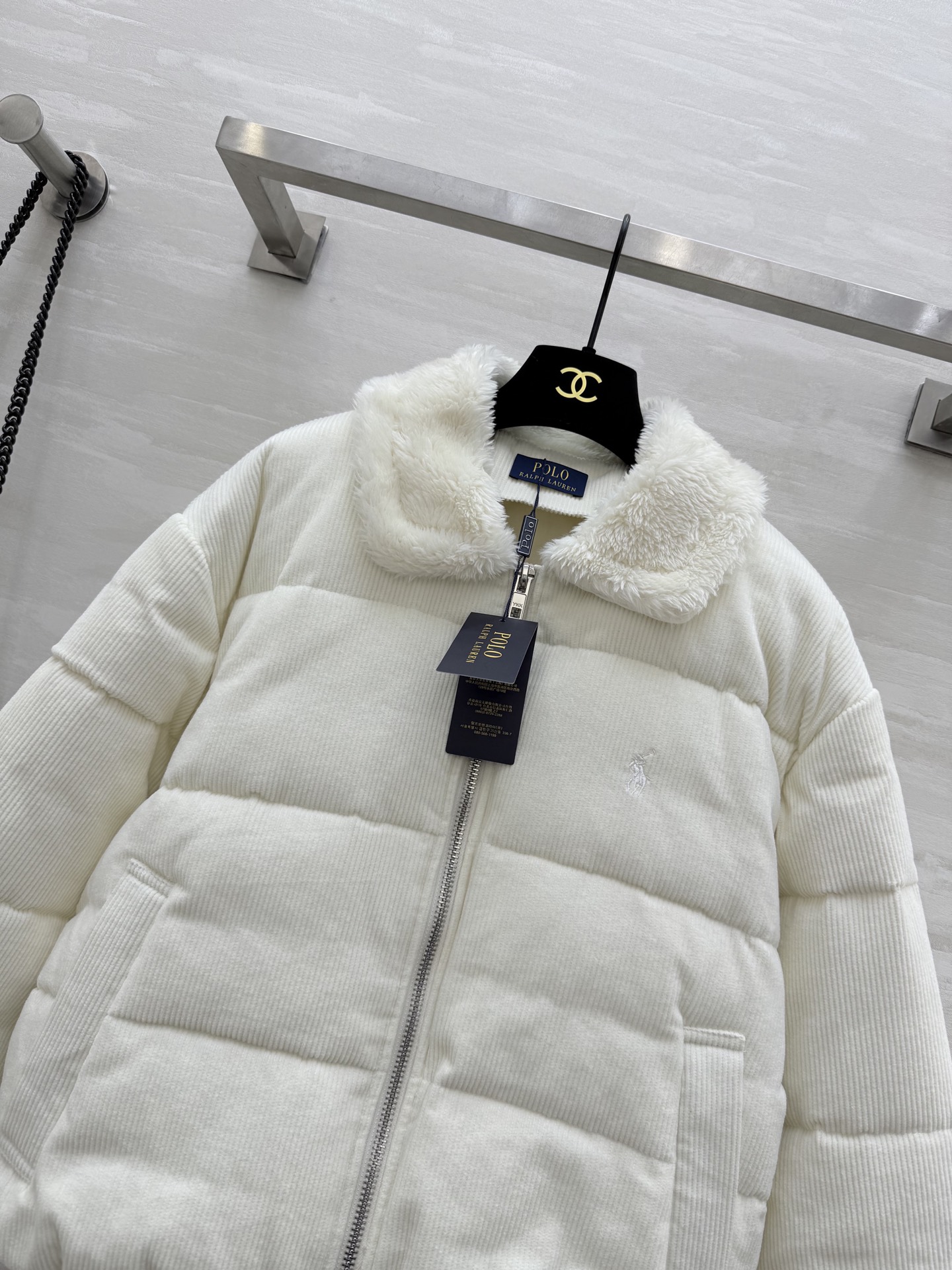 Veste d'hiver Ralph Lauren en velours côtelé avec duvet et col en fausse fourrure