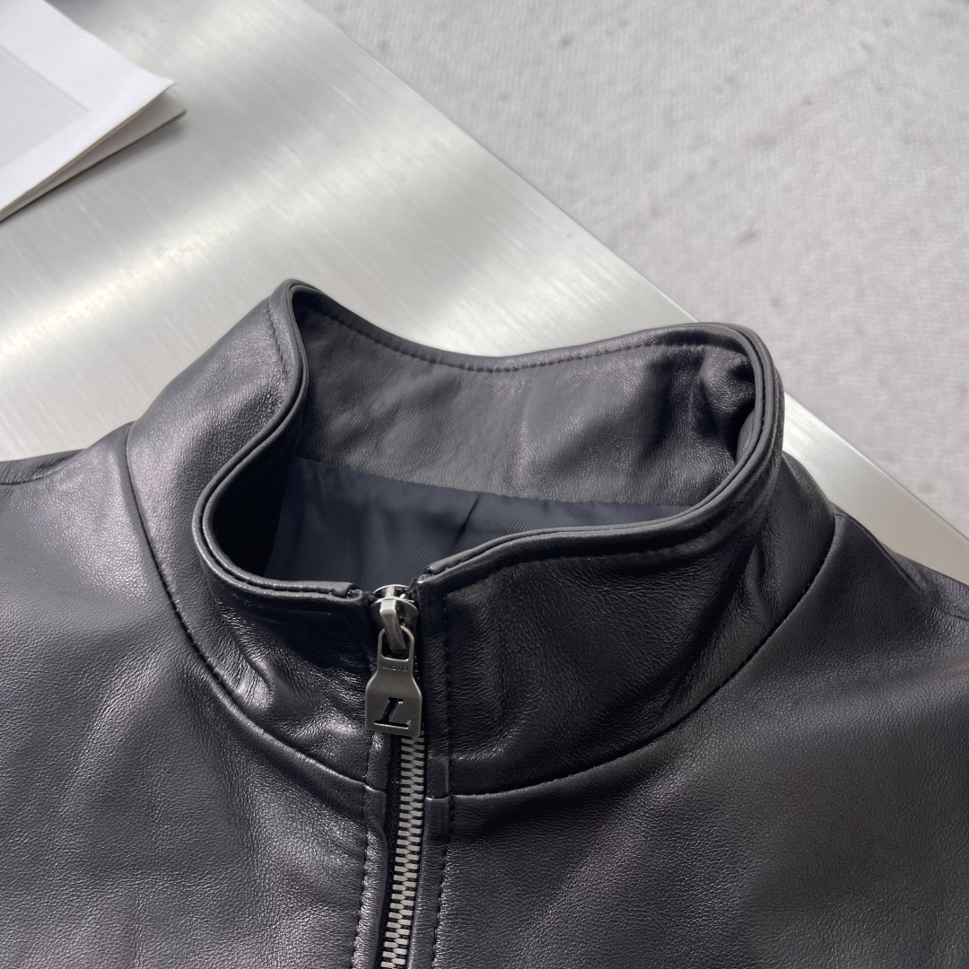 Cette veste Louis Vuitton incarne le luxe et la modernité. Confectionnée dans un mélange de cuir d'agneau souple et de nylon technique, elle offre un confort exceptionnel et une allure raffinée.