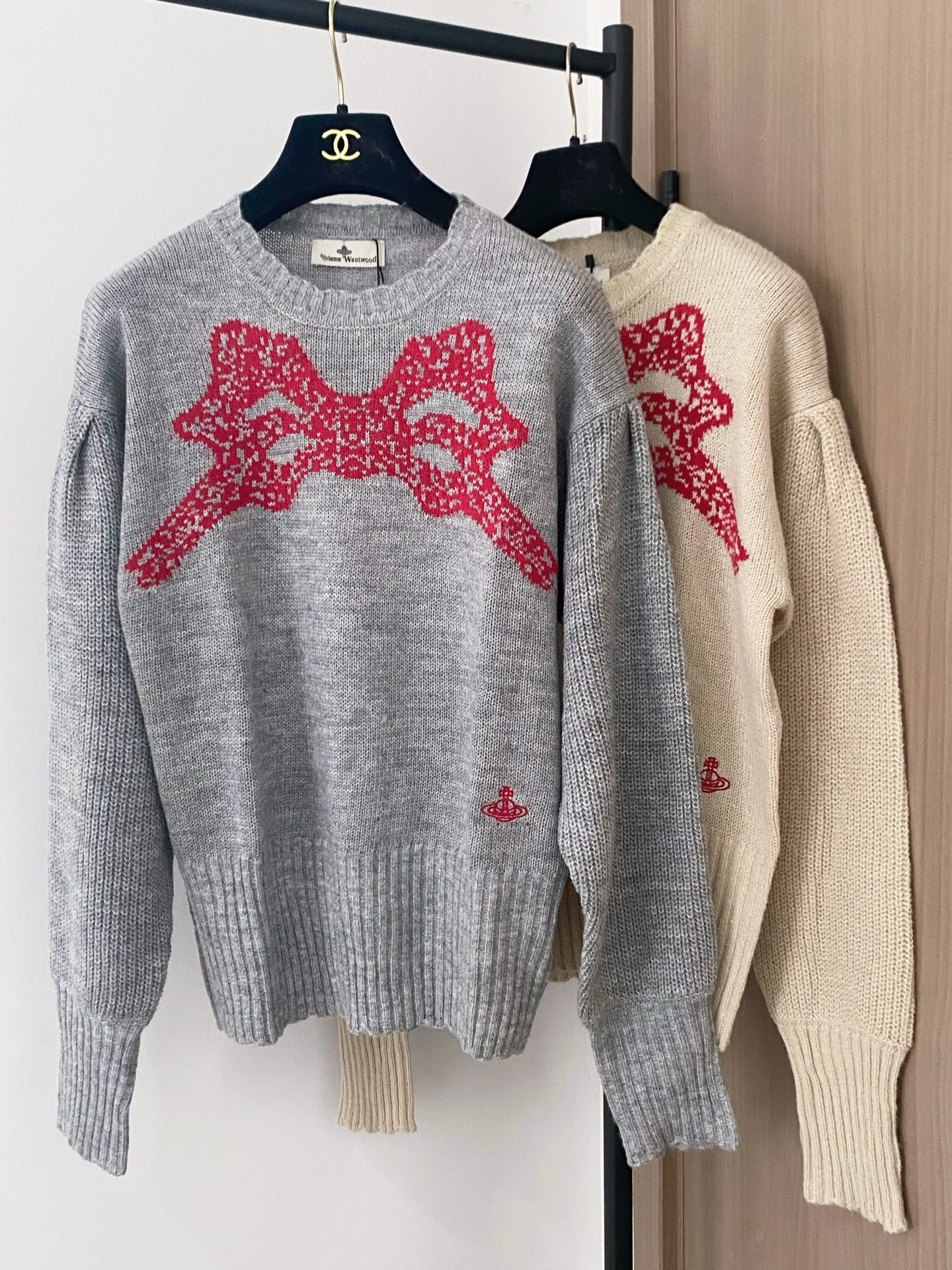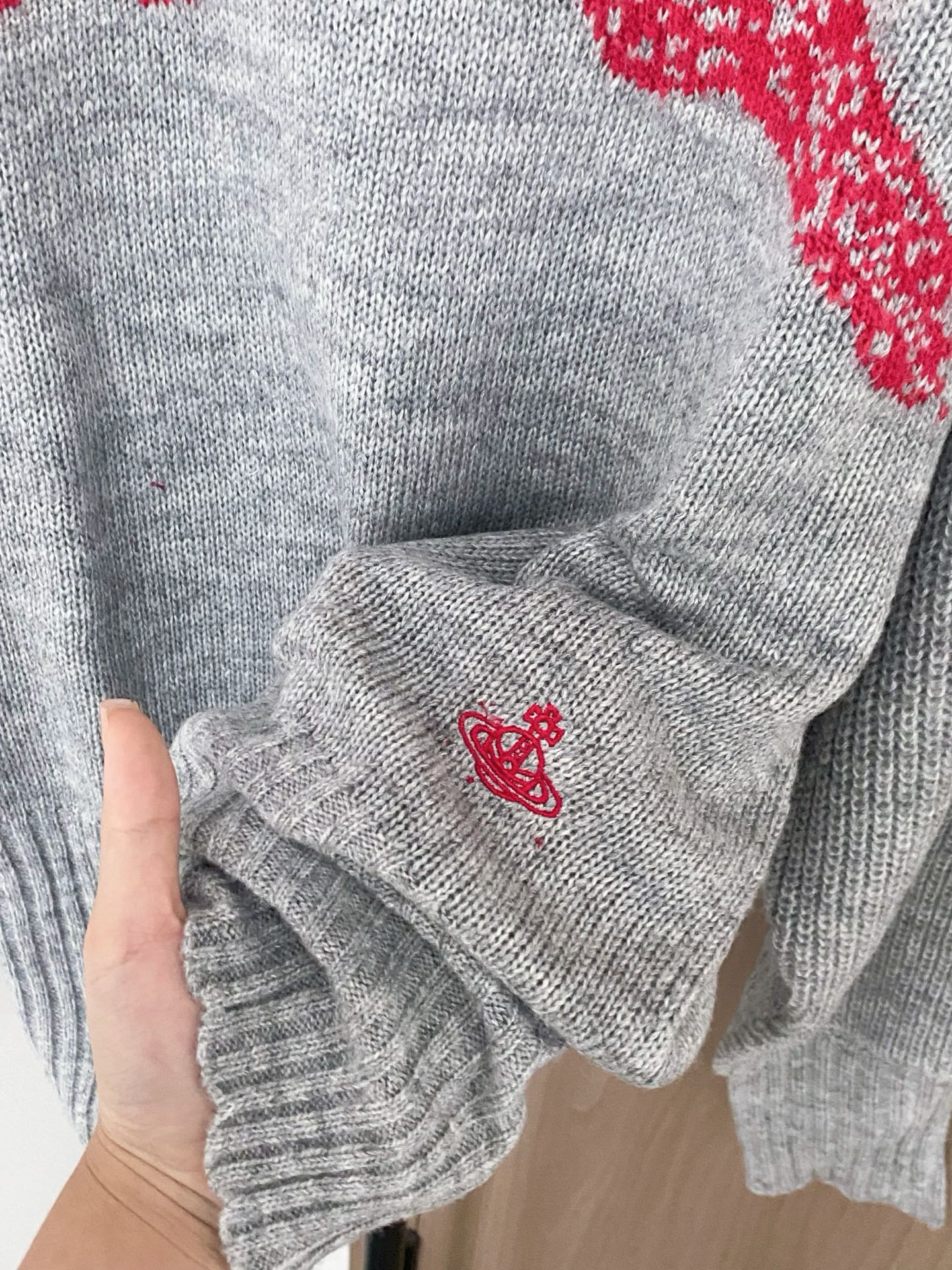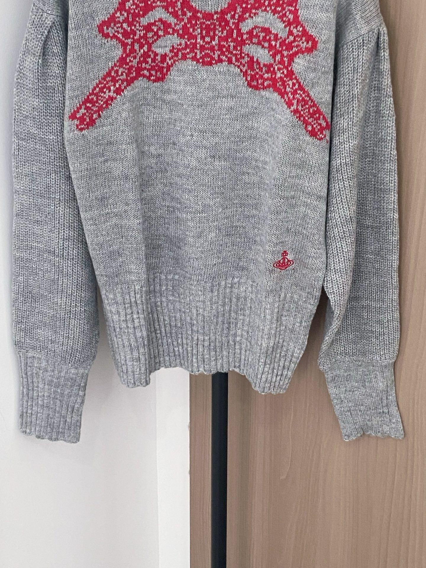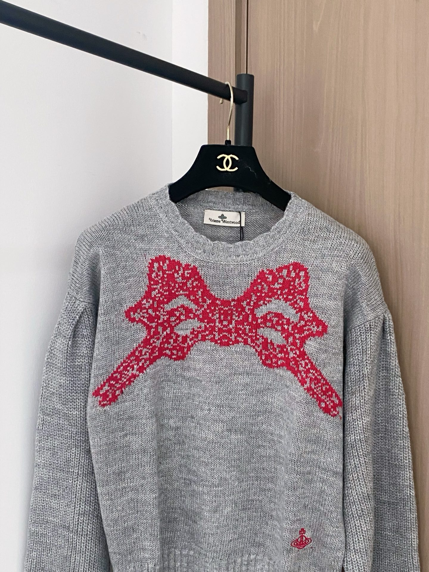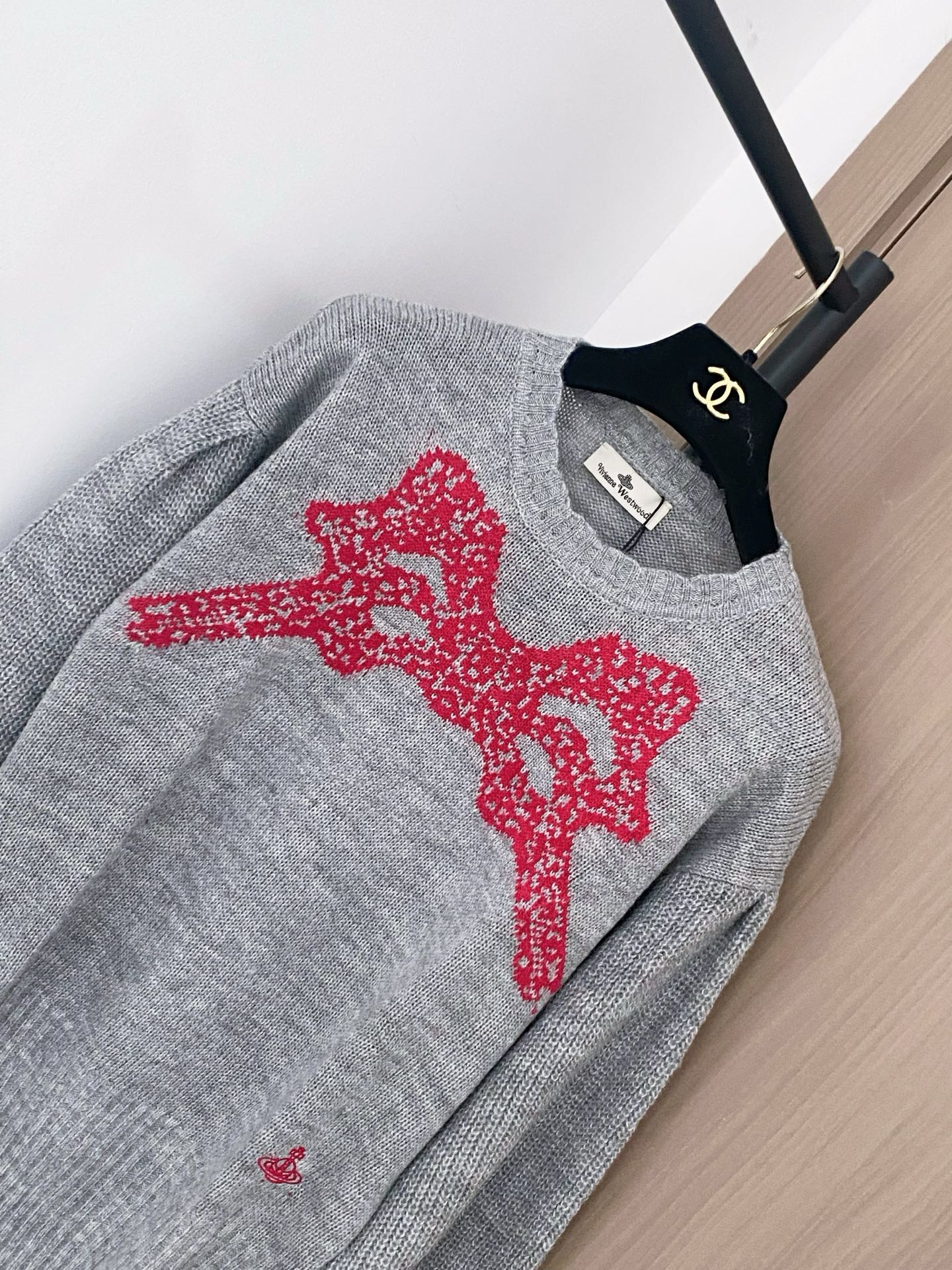 Tags: Mode Automne Hiver, Pull brodé, Pull en maille femme, Pull gris nœud rouge, Pull Manches Longues, Pull Vivienne Westwood