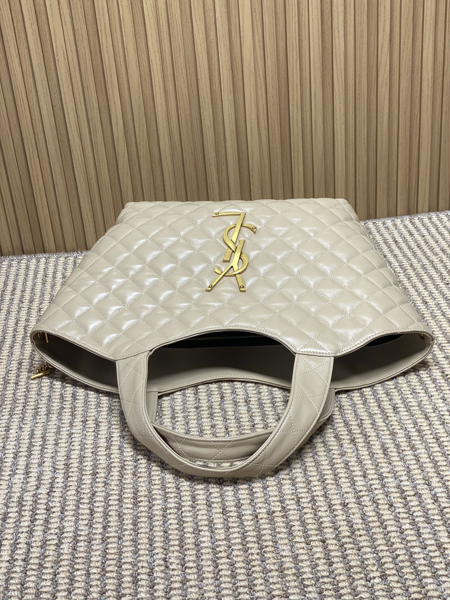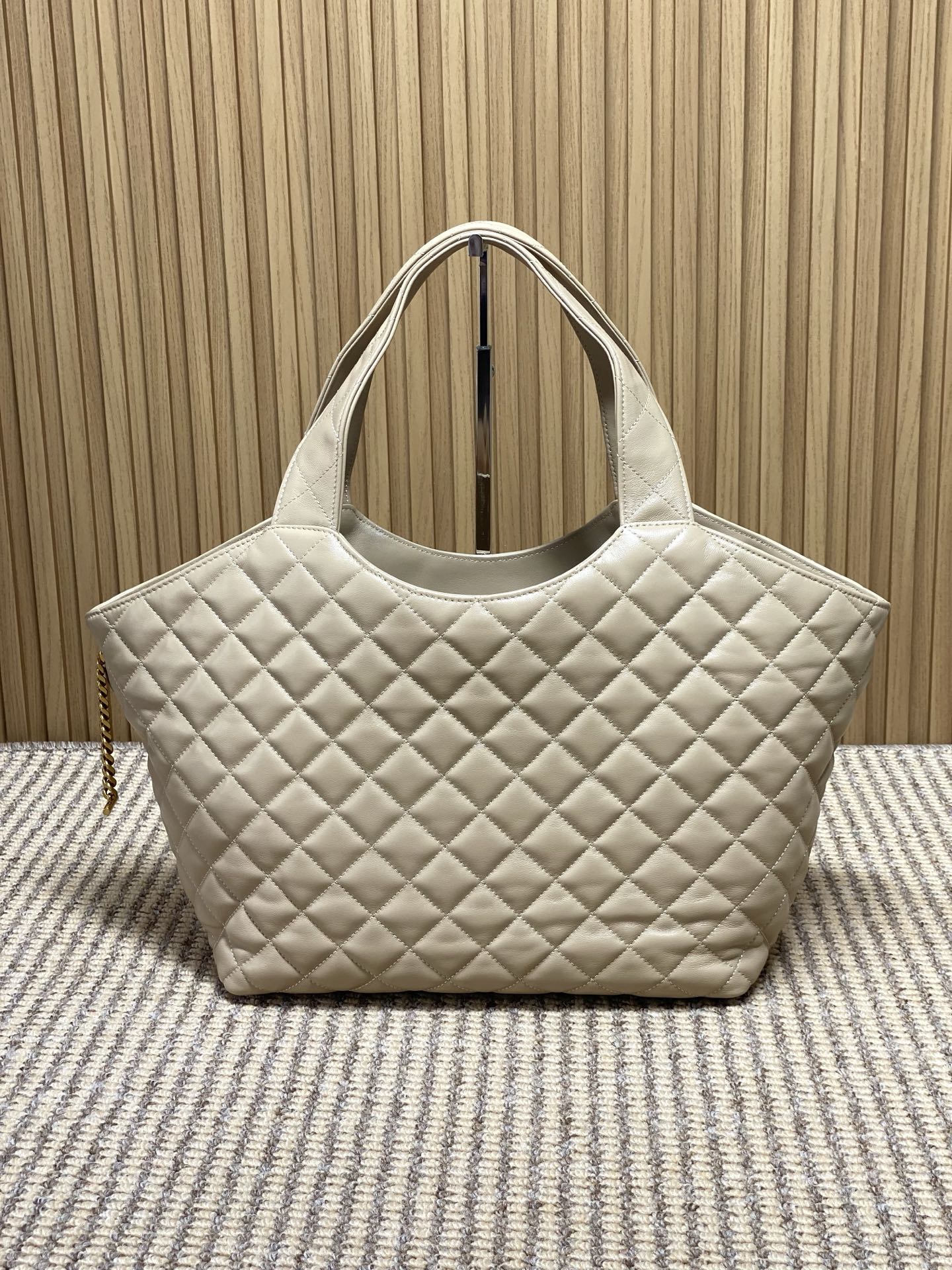 Élégance incarnée : le sac fourre-tout Icare de YSL en cuir d'agneau matelassé, un accessoire iconique pour sublimer votre allure.