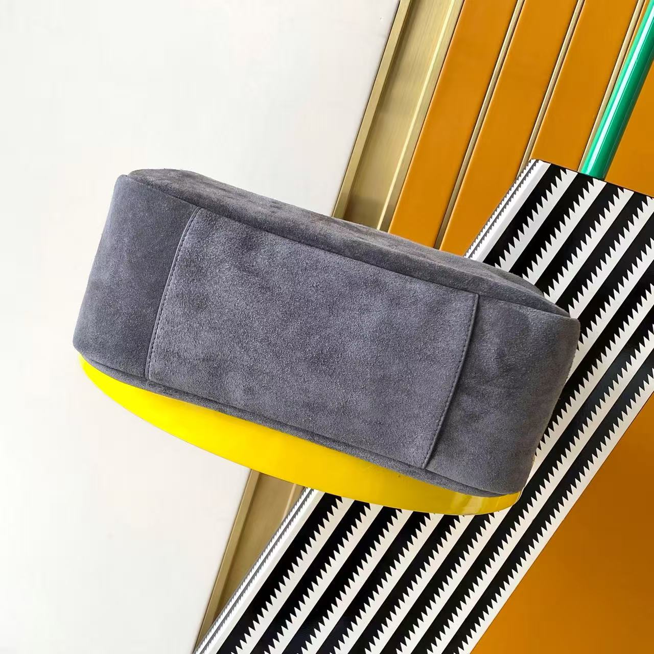 Le sac seau Yves Saint Laurent incarne l'élégance décontractée avec son design spacieux et sa silhouette hobo tendance. Confectionné en cuir suédé gris de haute qualité, ce sac offre une texture douce et un look sophistiqué.